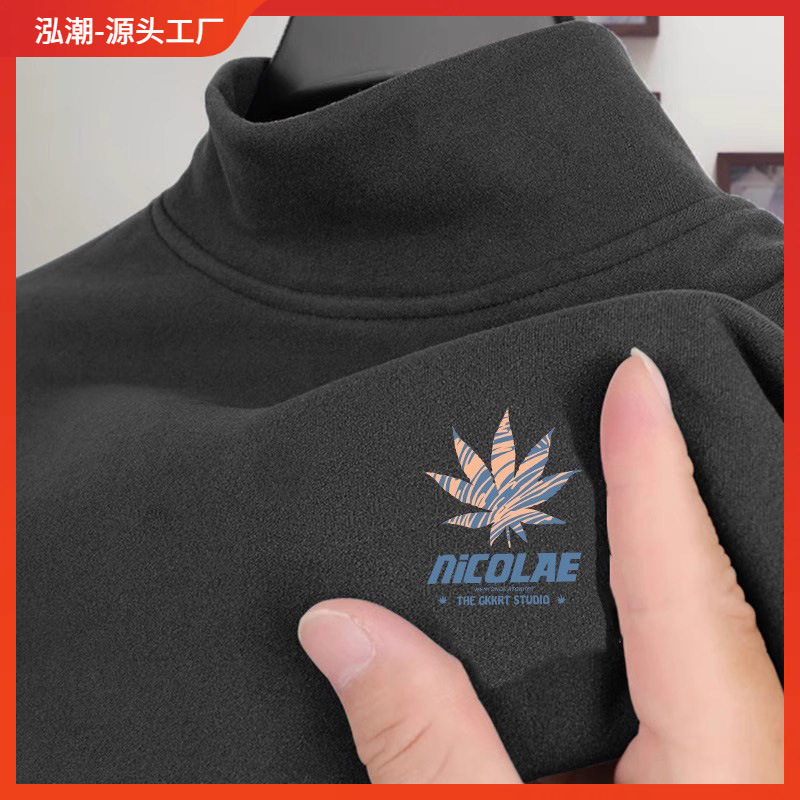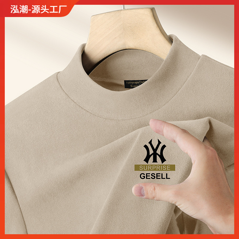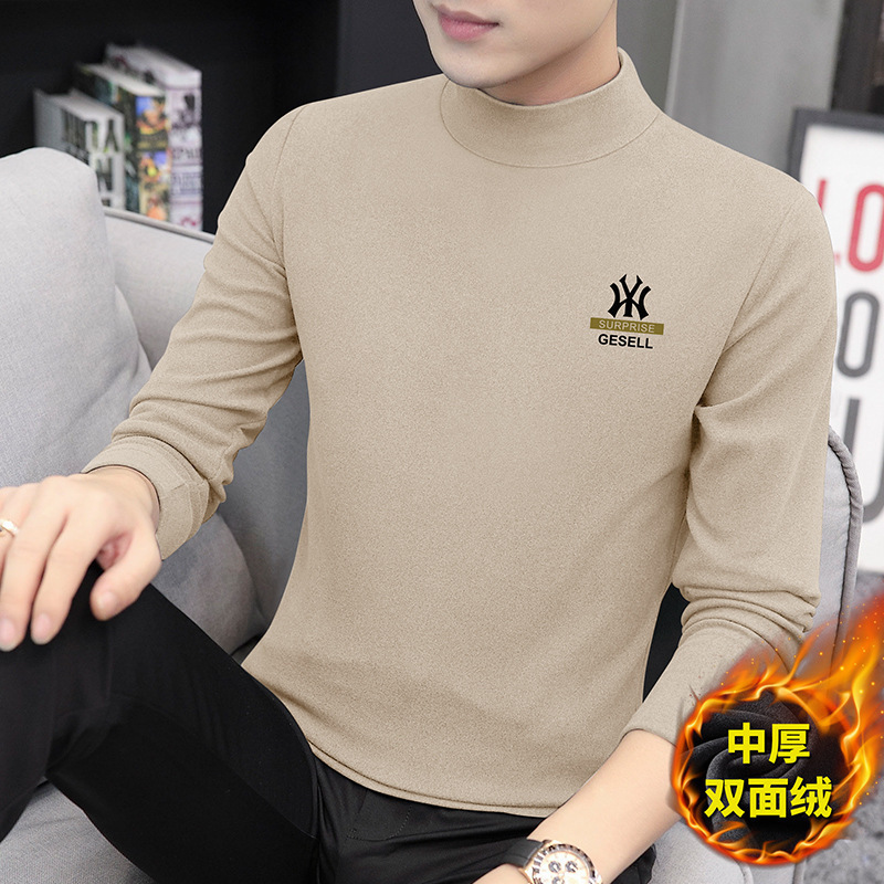 新款加绒保暖中领打底衫上衣200g双面德绒半高领长袖t恤男士秋冬