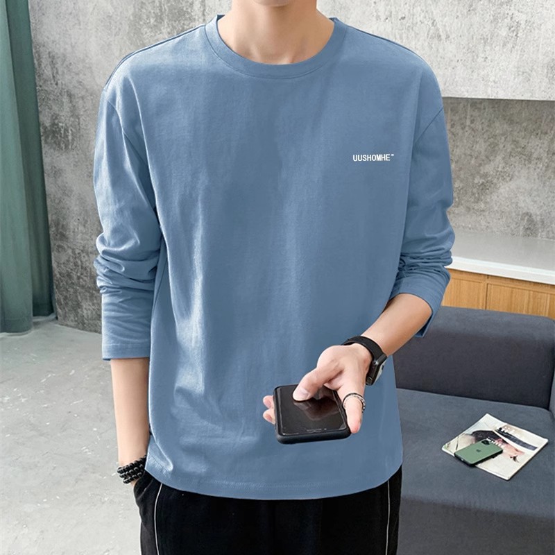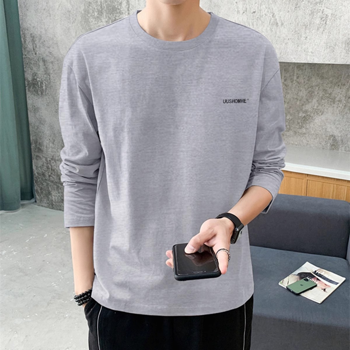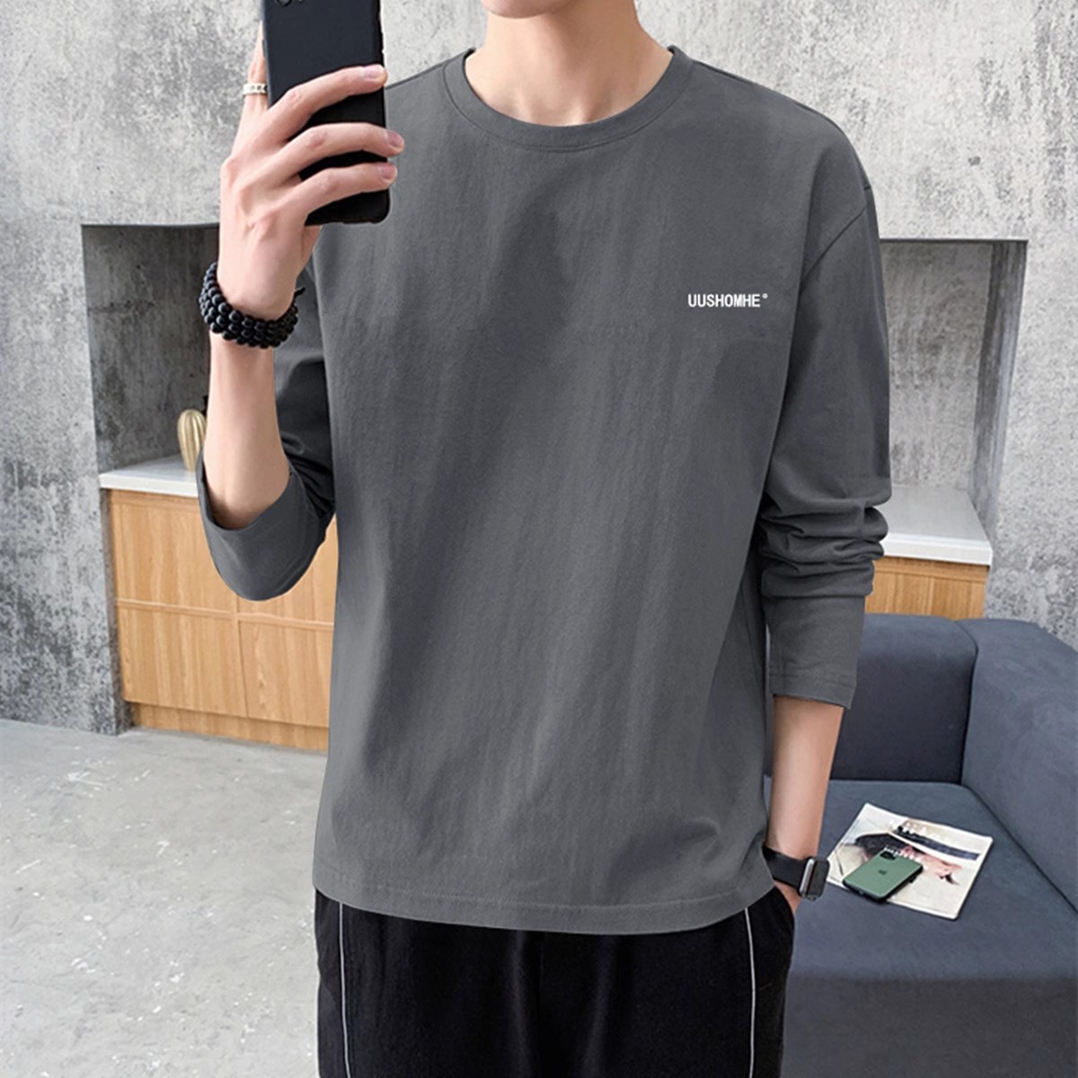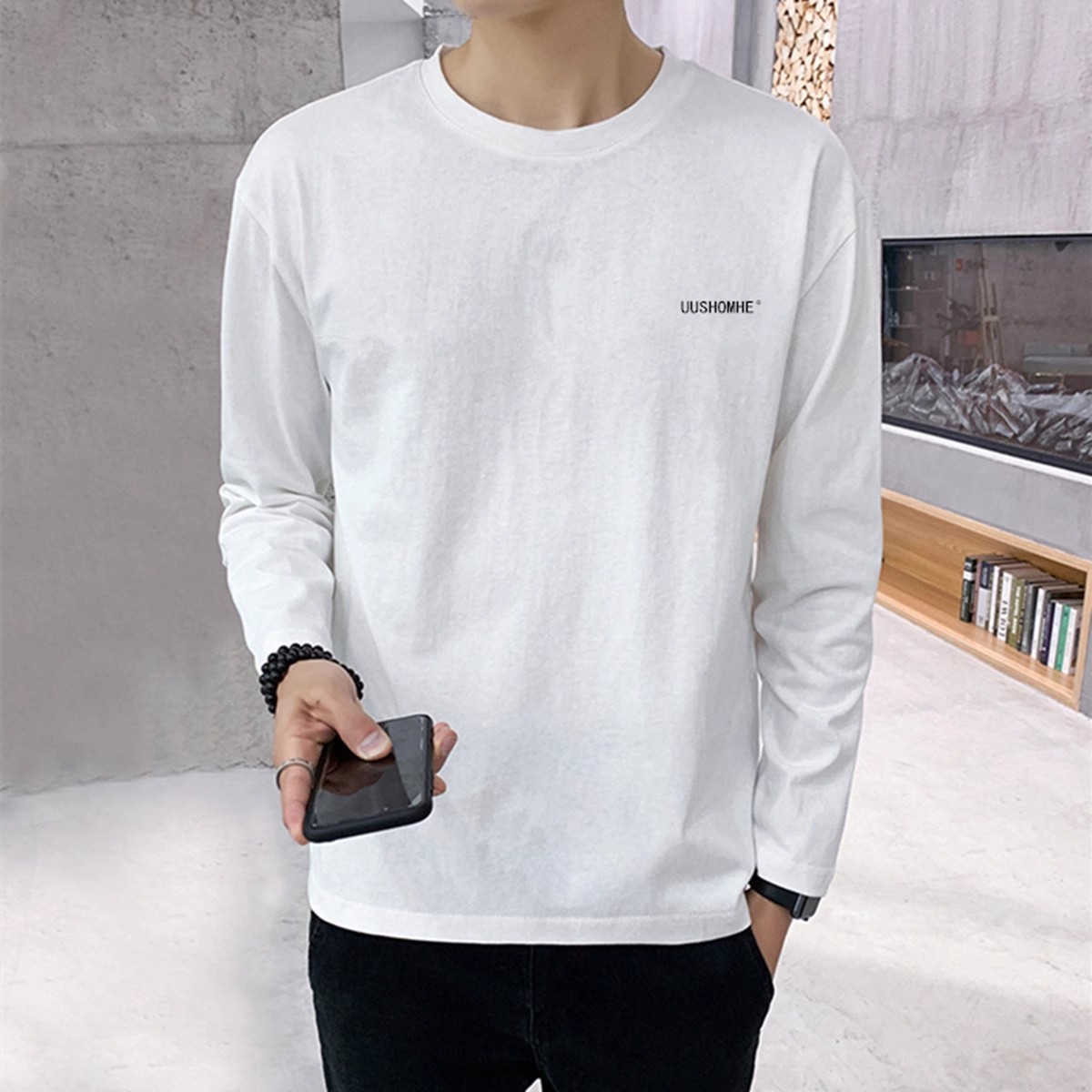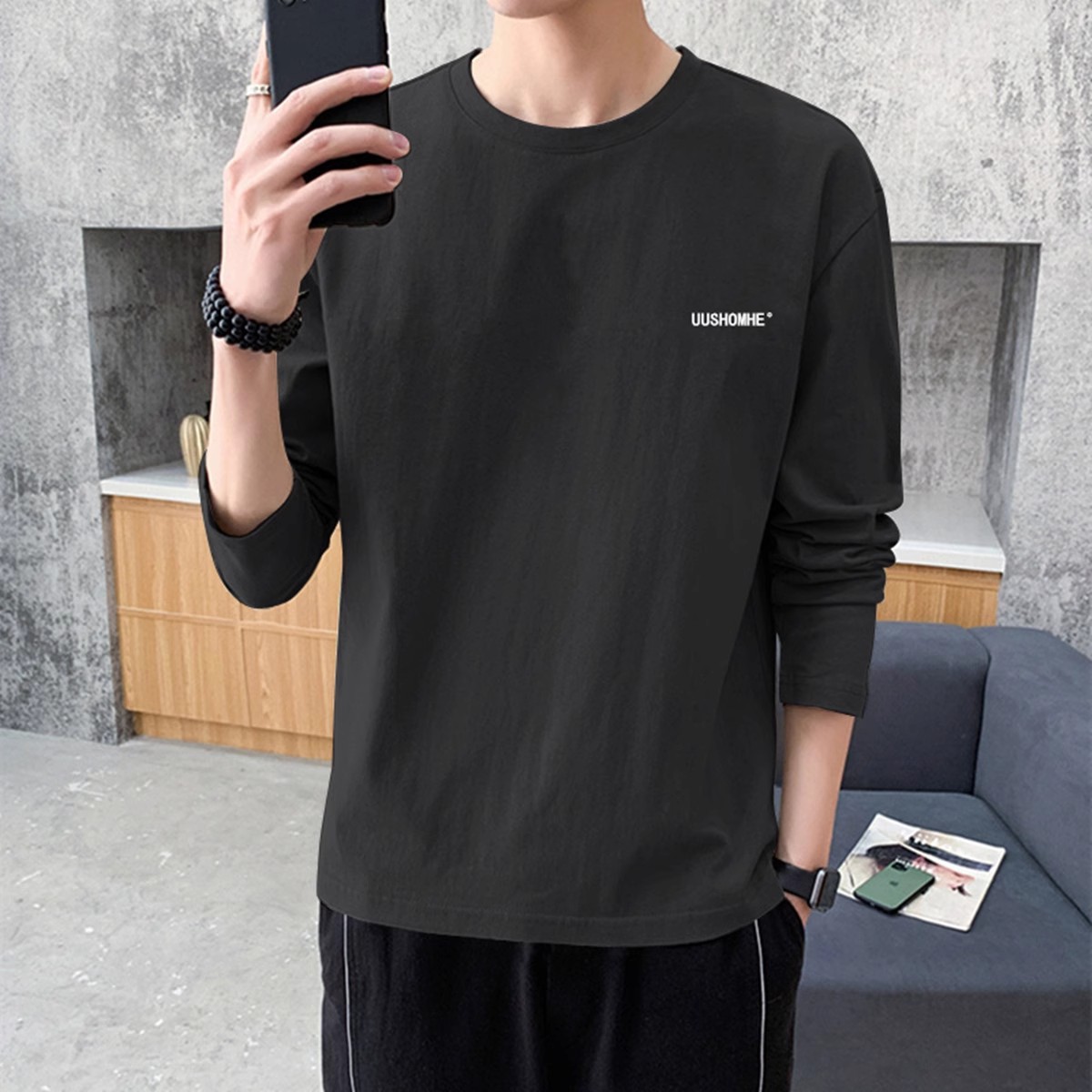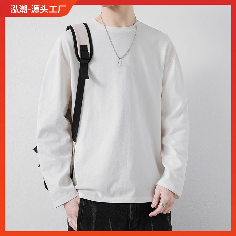 秋季新款长袖T恤男士潮流圆领T恤青年运动打底体恤男装一件代发