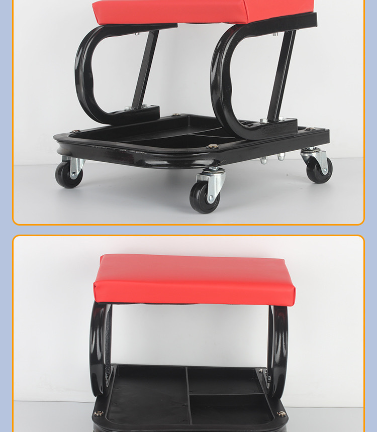 ツールトレイ付きユニバーサル自動車修理スツール、多機能モバイル自動車修理スツール、U字型ツールスツール、ユニバーサル横バー付きスクエアスツール