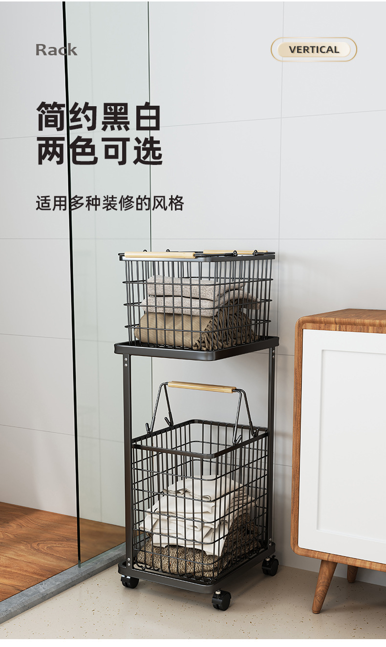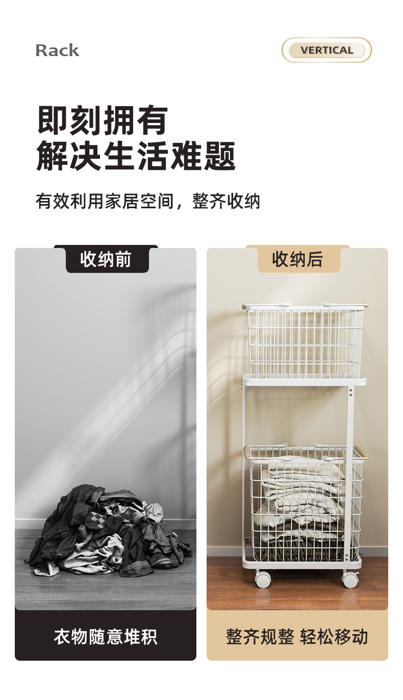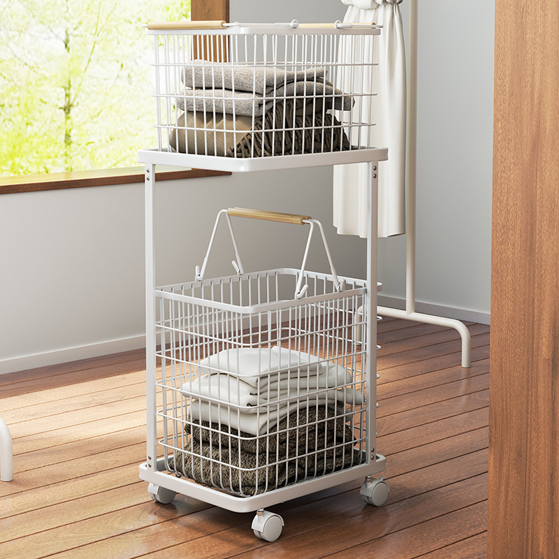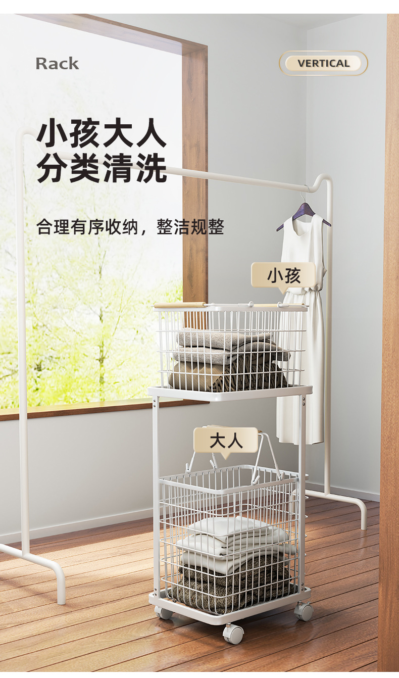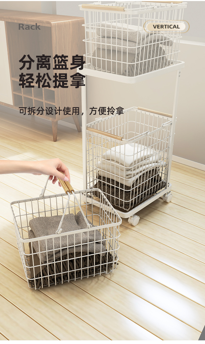 脏衣篮家用分隔洗衣脏衣篓多层收纳筐万向轮高级感铁艺推车收纳篮