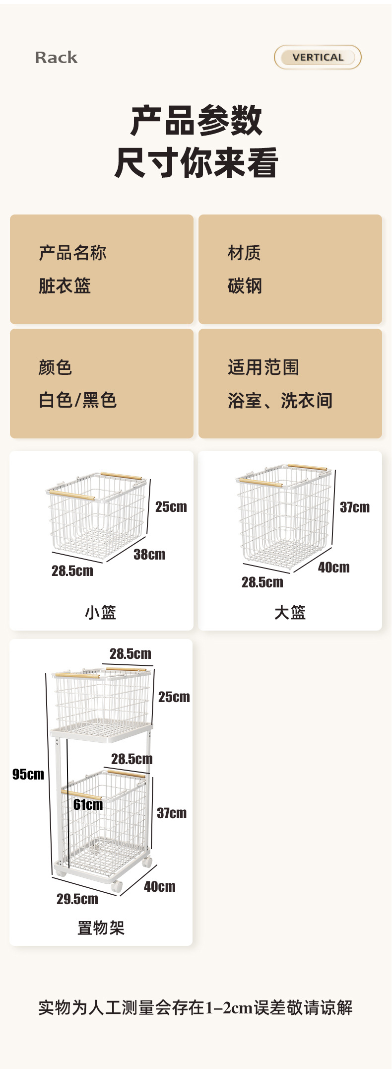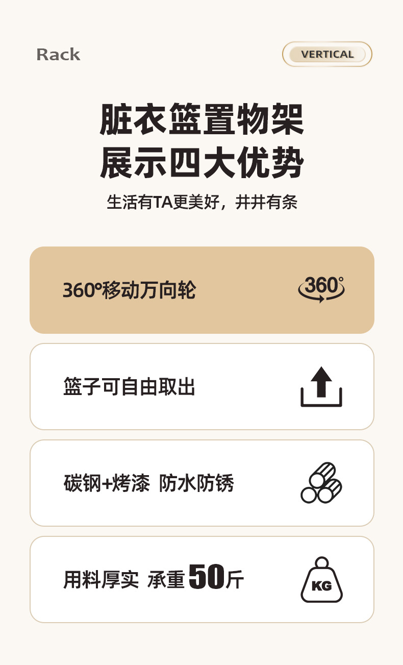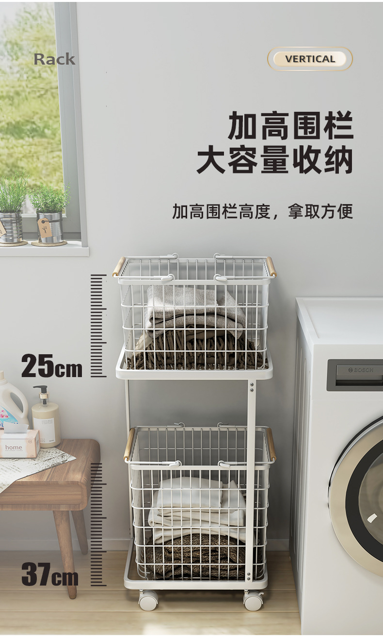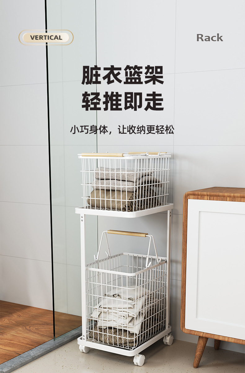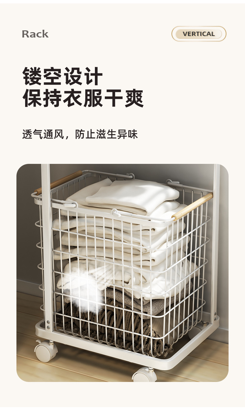 脏衣篮家用分隔洗衣脏衣篓多层收纳筐万向轮高级感铁艺推车收纳篮