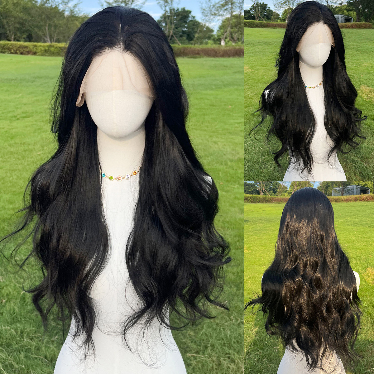 Tiktok起爆13*4フロントレース黒大波自然カールは日常的に化学繊維かつらを着用するのに適している