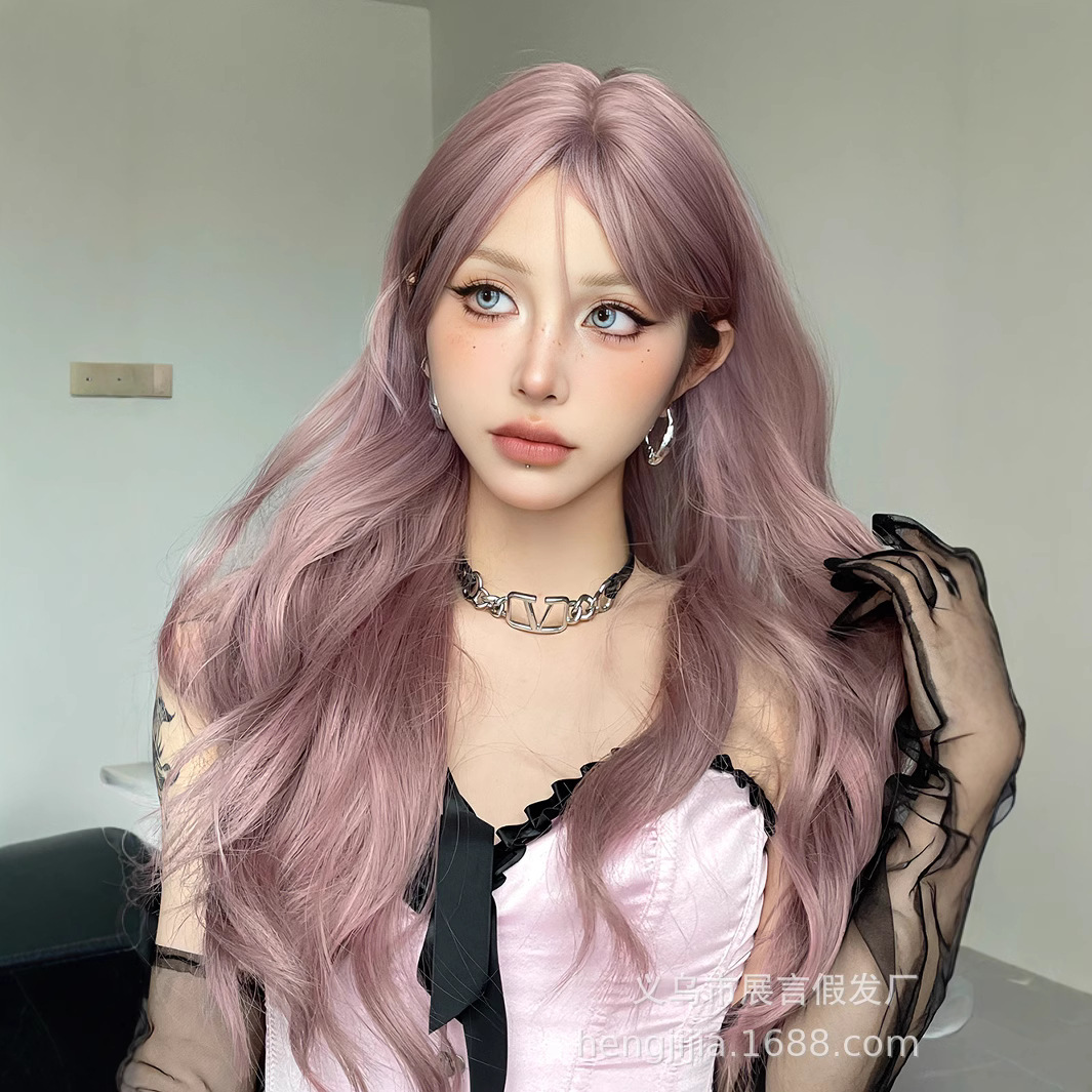 クロスボーダーのかつらの女性の長い髪のピンクの長い巻きのかつらの女性の全体のカバーのlolitaのかつらの自然でリアルなかつらのカバー
