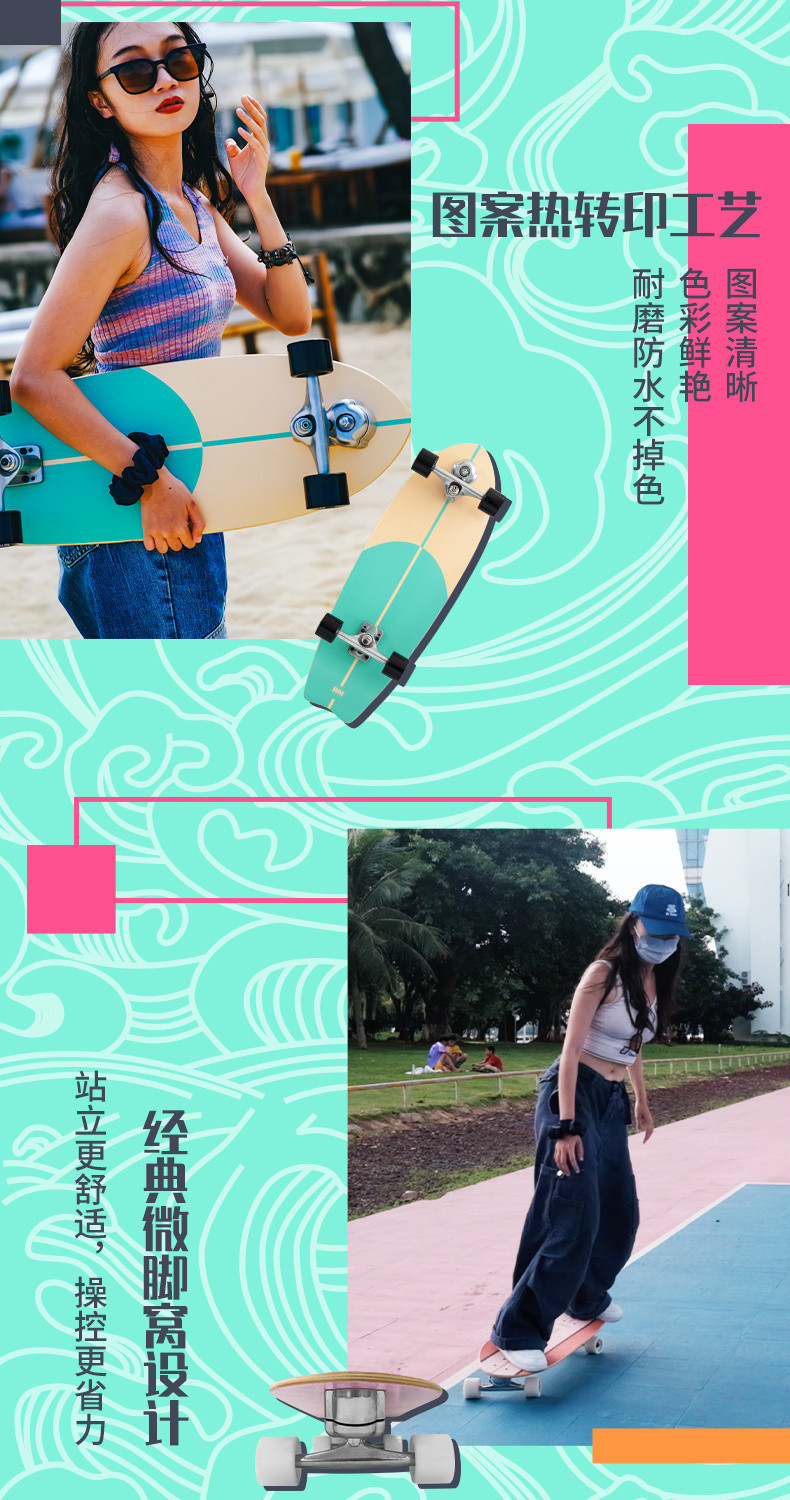 陸上のサーフボードは初めてスケートボードを勉強します。