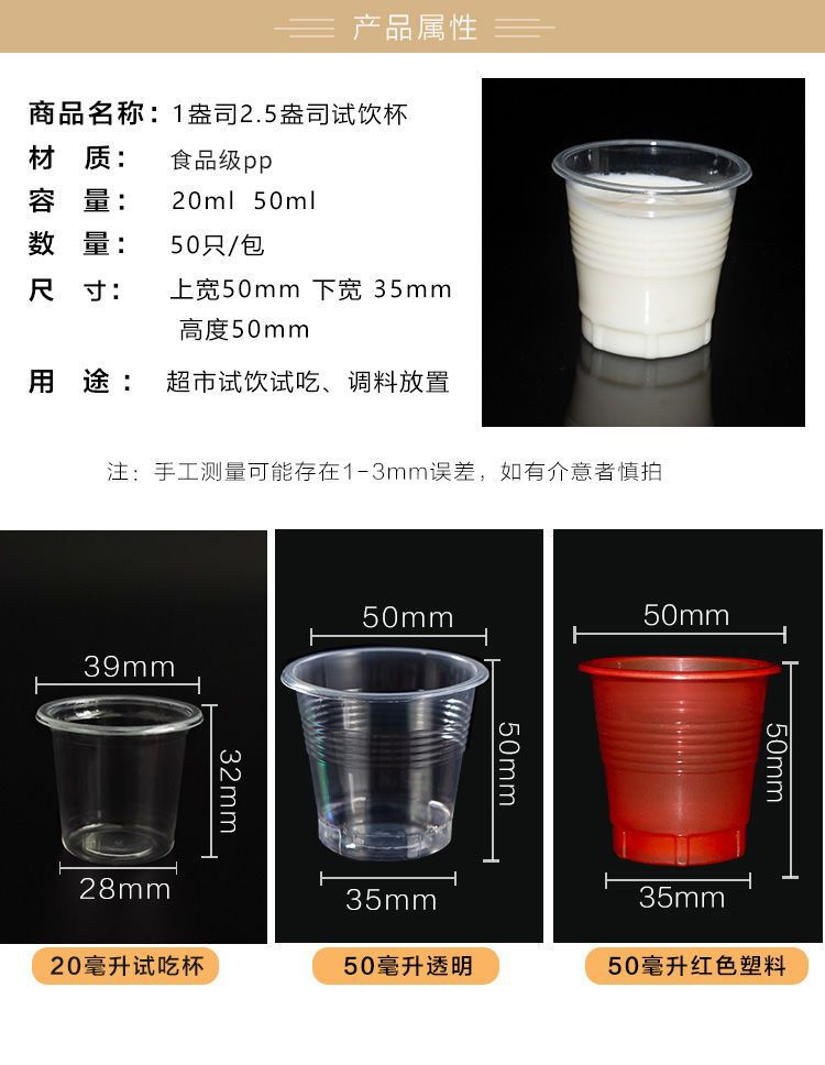 试饮杯一次性杯子一口杯试吃品尝小号塑料迷你酒杯20/50ml小纸杯