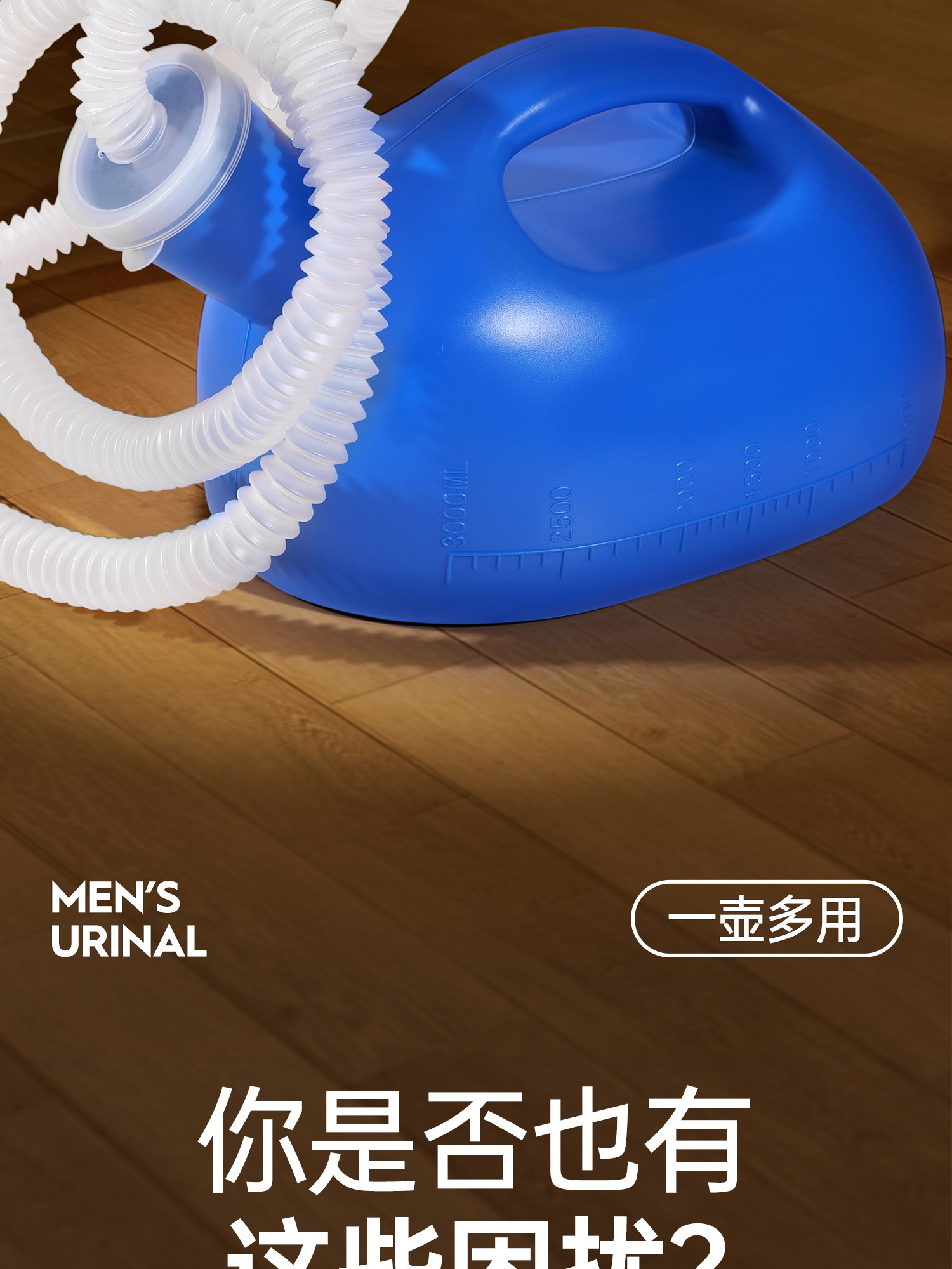 小便器 メンズ 2000ml 高齢者用チャンバーポット チューブカバー付き 厚みのある男性用 立ち上がり防止小便器 尿バケツ 無臭