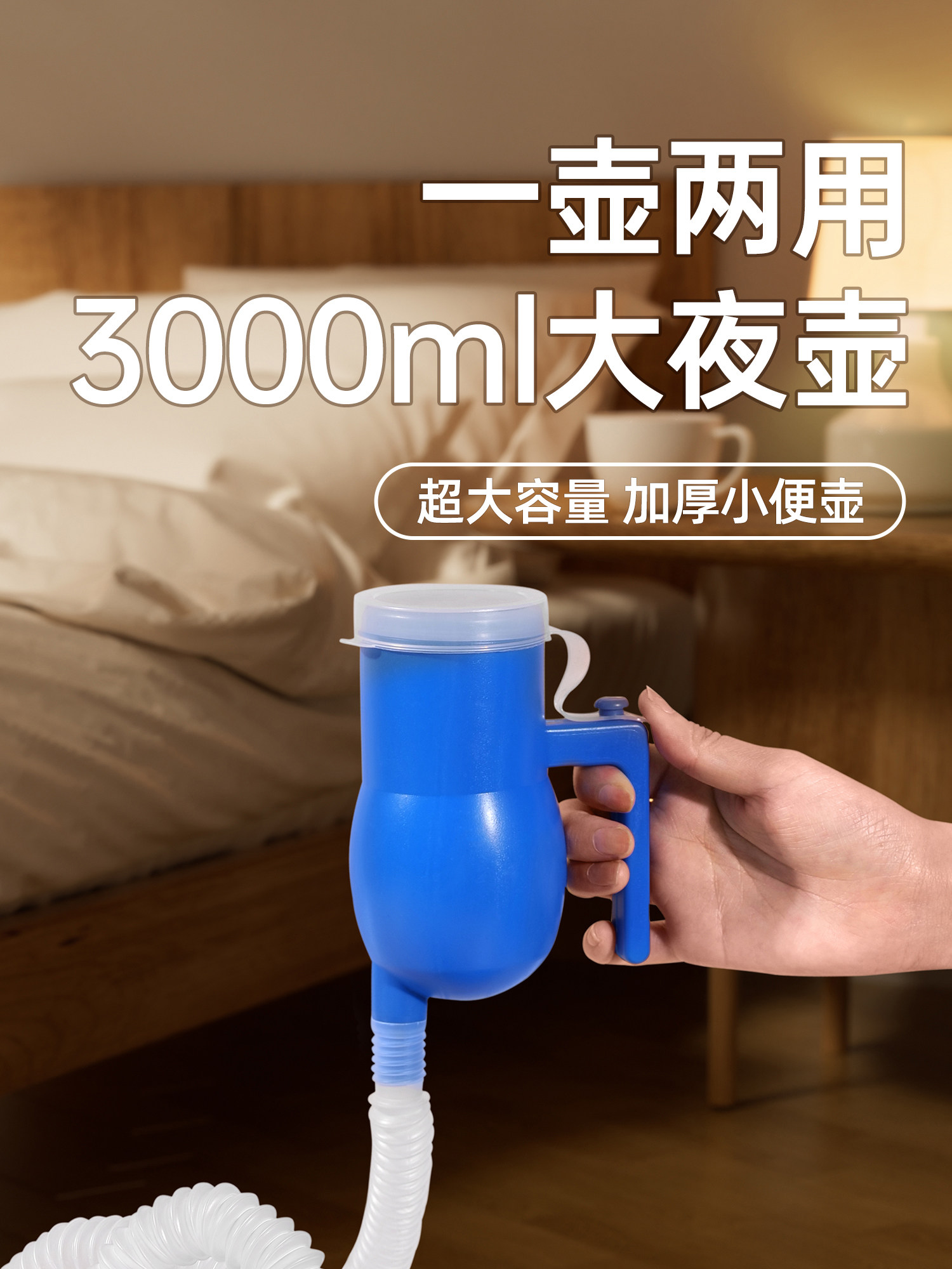 尿びん2000ml夜びん車載小便器尿桶尿器管付き目盛付き蓋付き男性大サイズプラスチック