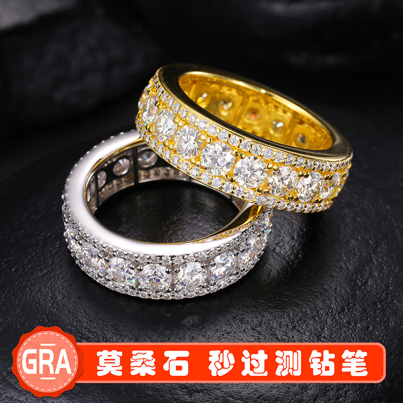 欧米風クロスボーダーS925純銀モアサナイトリング、絶妙な円形、トレンディで軽やかな高級感のある指輪、男女兼用ジュエリー