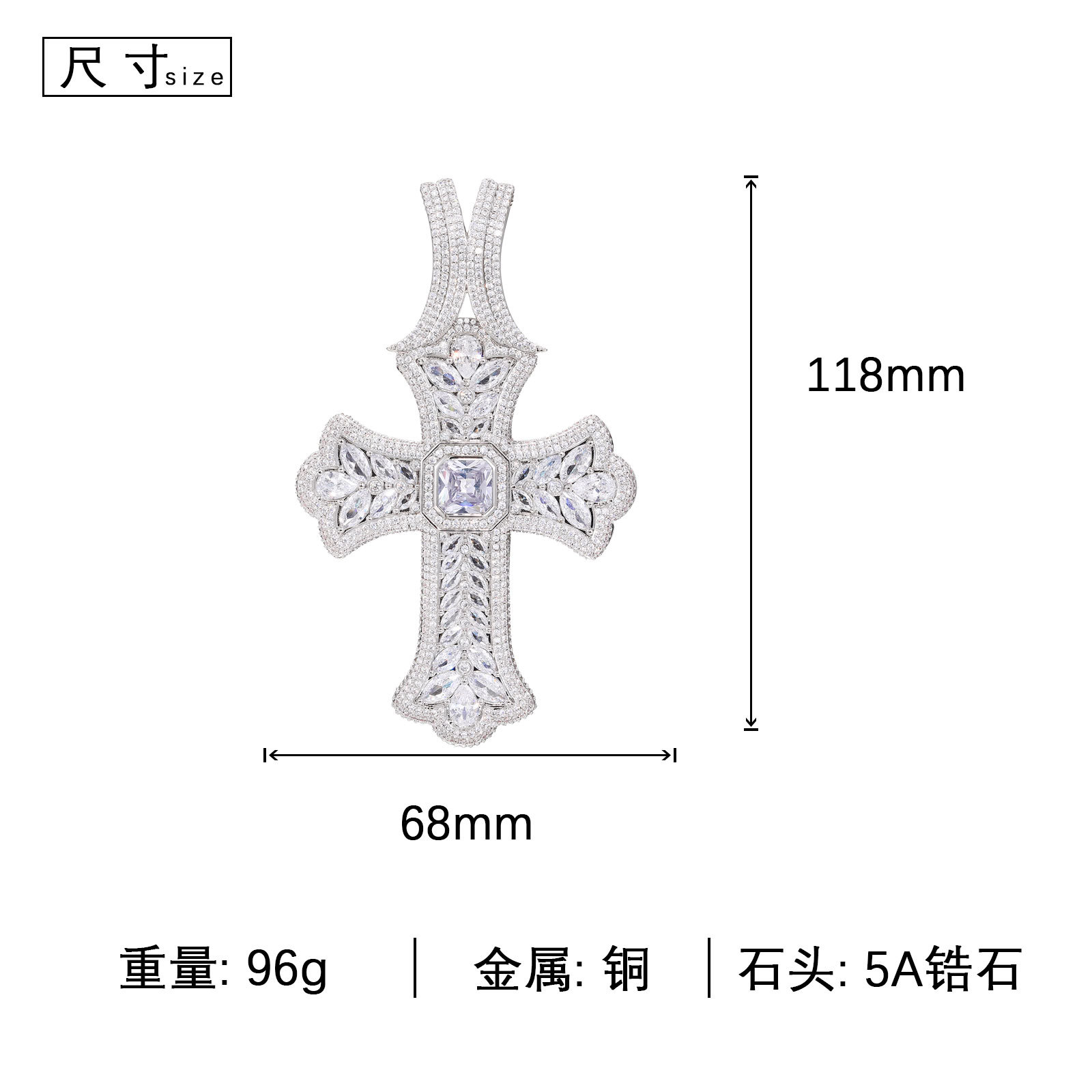 吊坠高级感新款时尚嘻哈镶钻超大十字架项链夸张夜店男士饰品现货