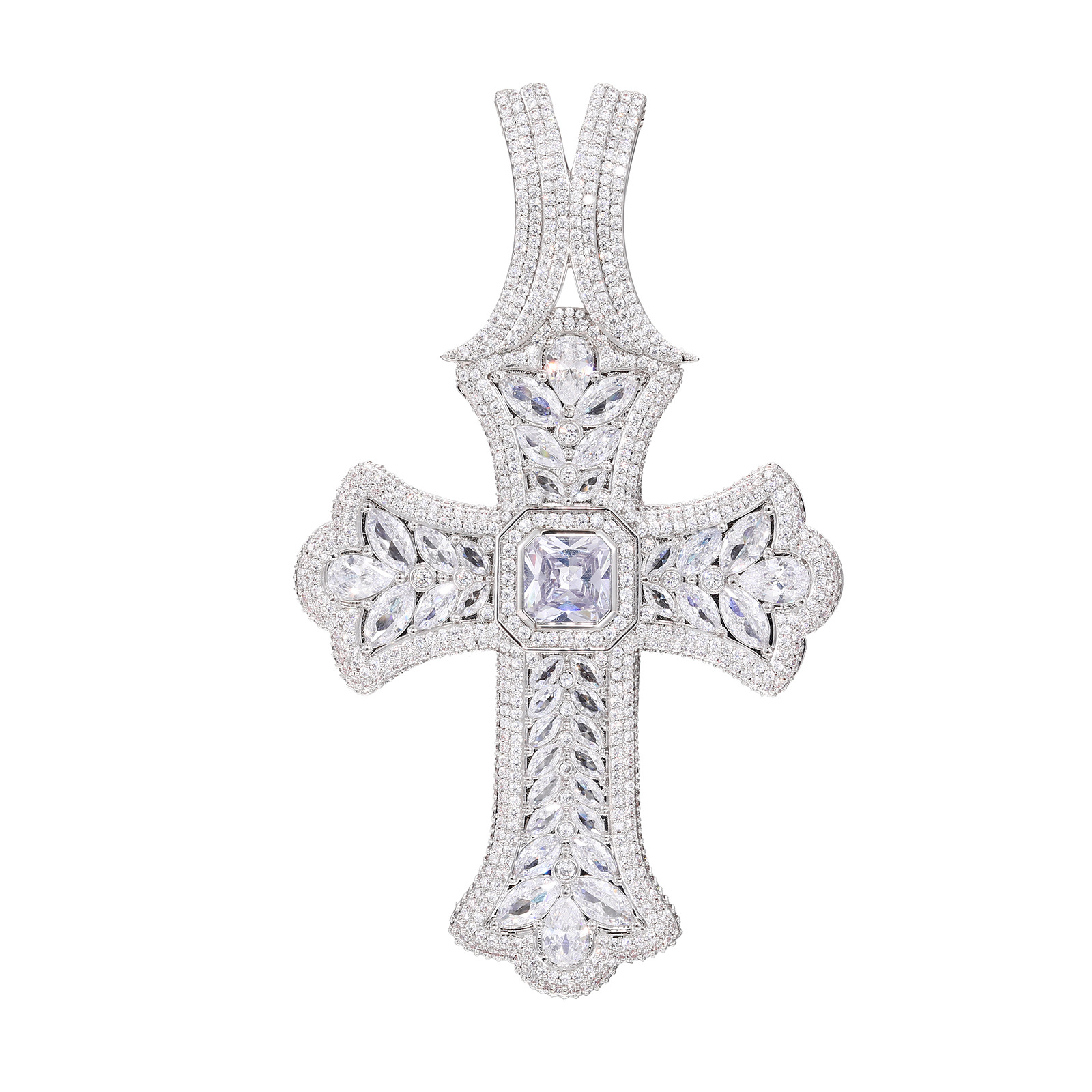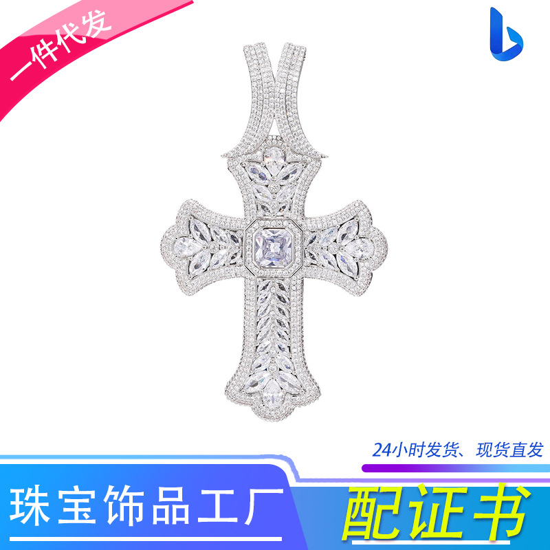 欧米風新作ファッションヒップホップダイヤモンドクロスペンダントネックレス、個性的でトレンディなメンズアクセサリー、在庫あり