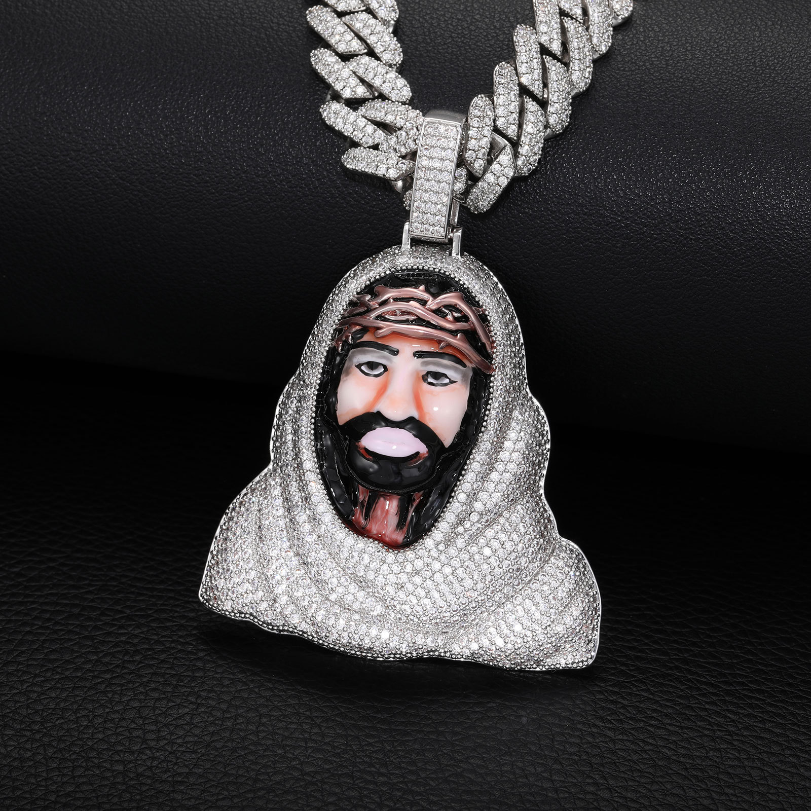 欧美跨境街头潮流高端嘻哈珠宝铜镶锆石珐琅项链吊坠源头工厂批发