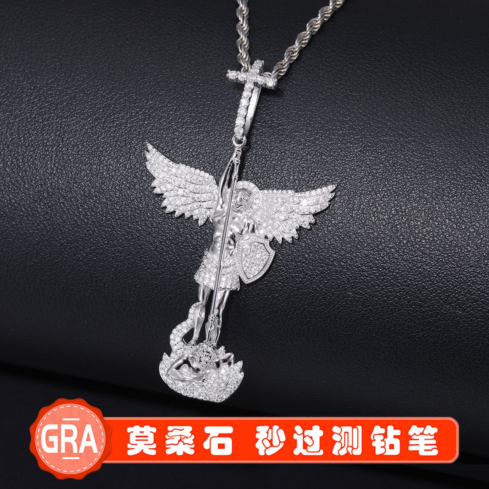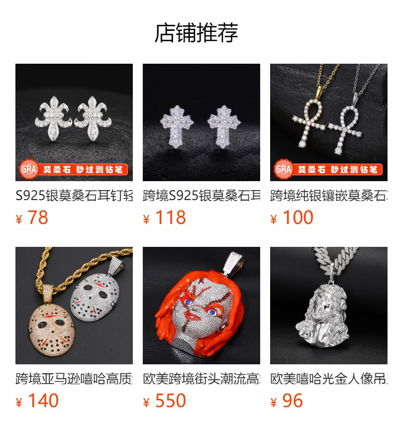 跨境S925银莫桑钻嘻哈风格经典人物头像项链镶钻吊坠欧美潮流配饰