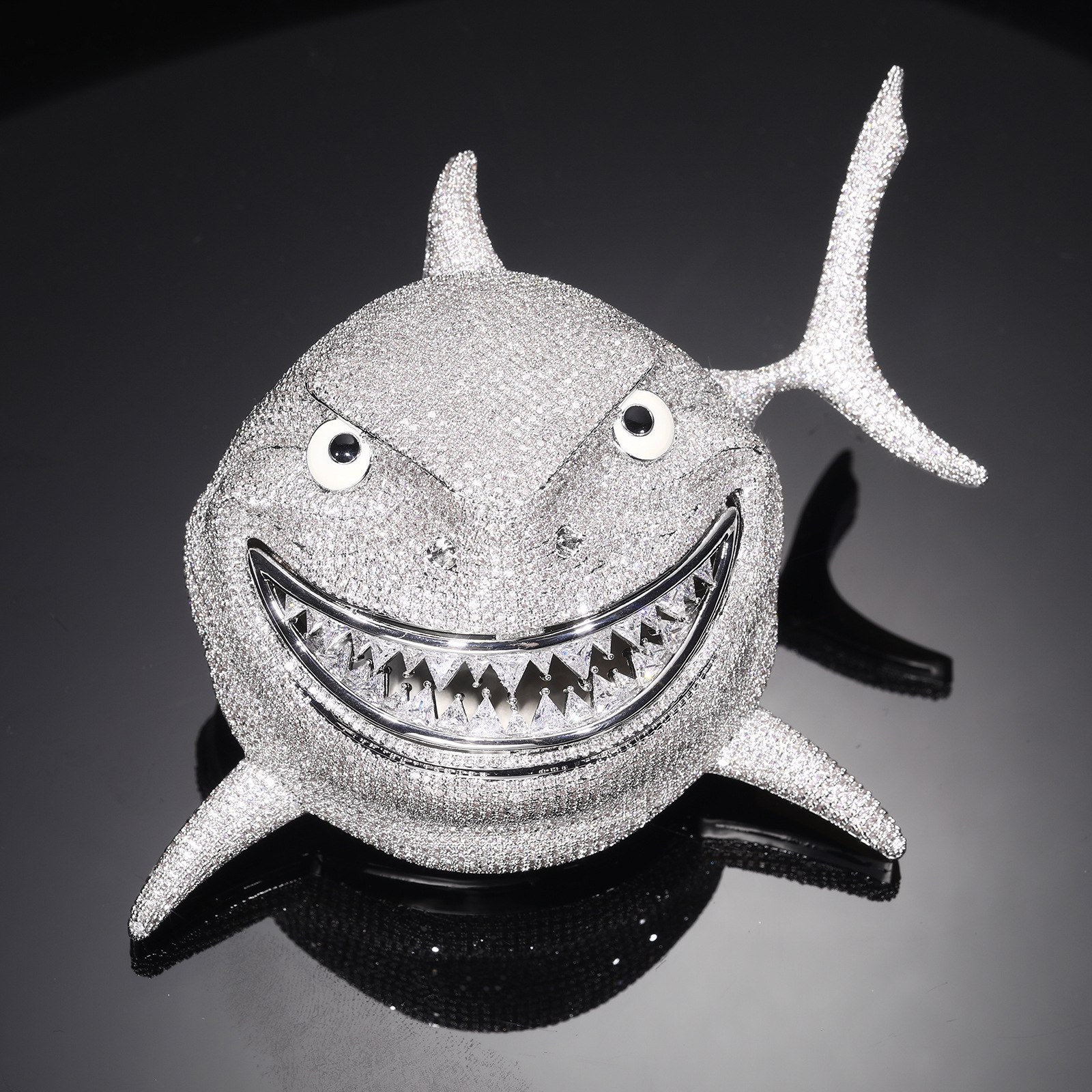 欧美嘻哈5A锆石满钻大鲨鱼吊坠项链个性时尚潮牌项链配饰饰品男士
