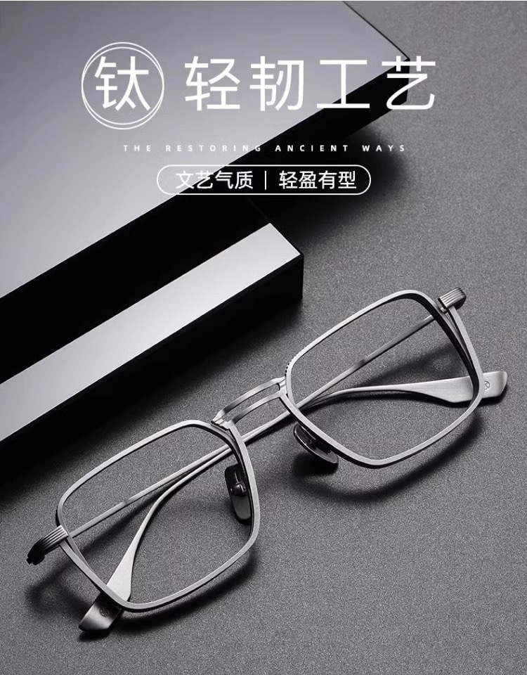 2023超軽量純近視眼鏡枠男性モデルは度数レンズの大きな顔を持っていて、レトロな目のフレームを広げることができる