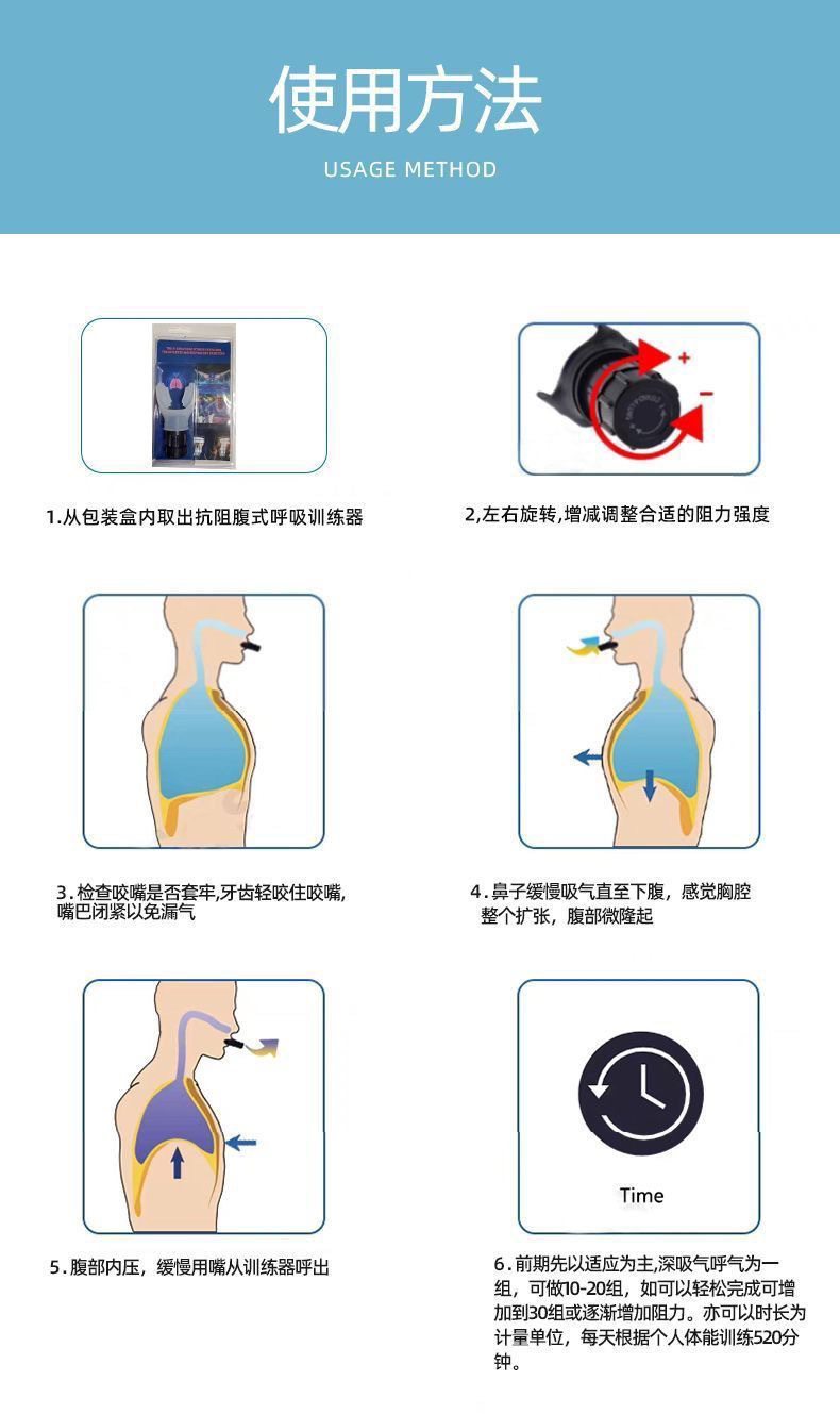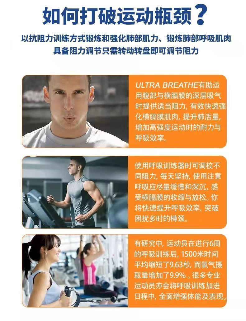 呼吸训练器力量训练跑步瑜伽游泳肺活量强肺腹压运动器材呼吸器