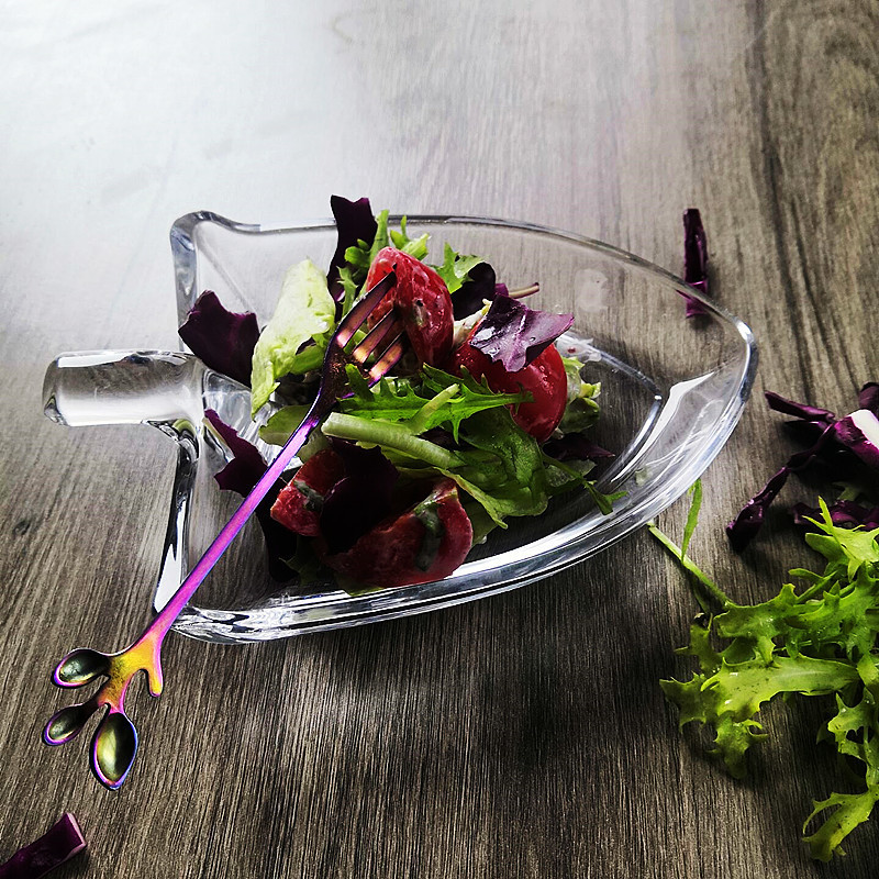 ガラス碗サラダ碗家庭用創意ins純色ヨーロッパ式四方斗碗現代シンプル果物皿デザートカップ