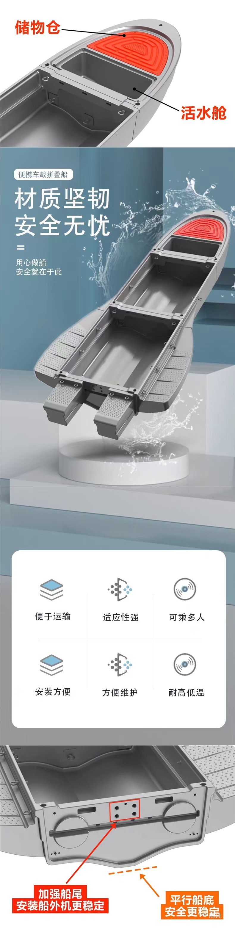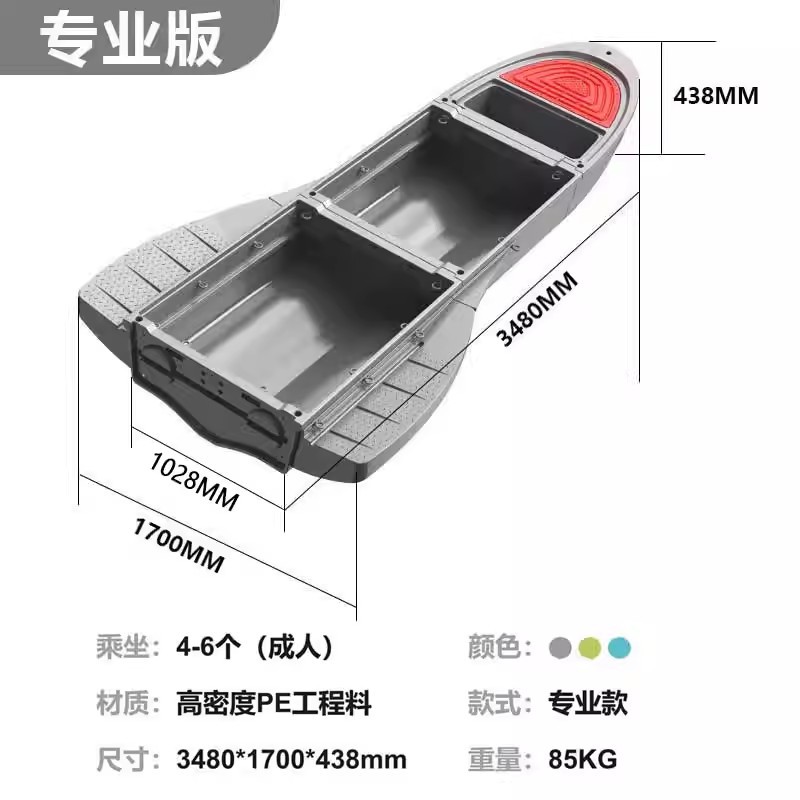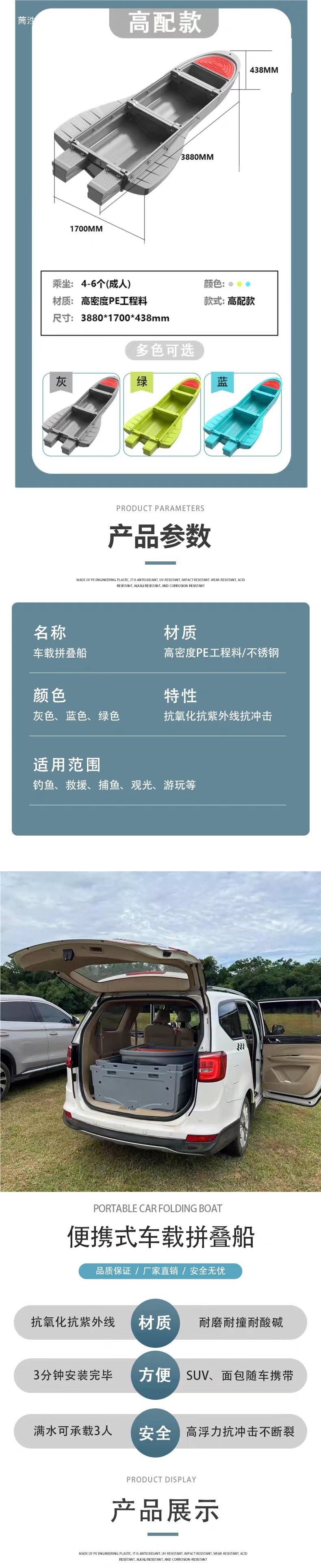 工程塑料船车载便携塑料船拼叠船pe船小船钓鱼船路亚船折叠船渔船