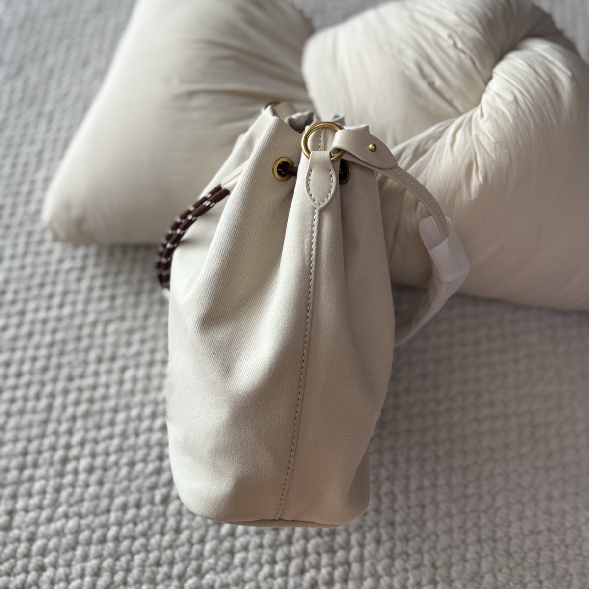 070107 夏の新しい女性のキャンバスバケットバッグ無地プレミアムカジュアルシンプルなチェーンメッセンジャーレディースバッグ