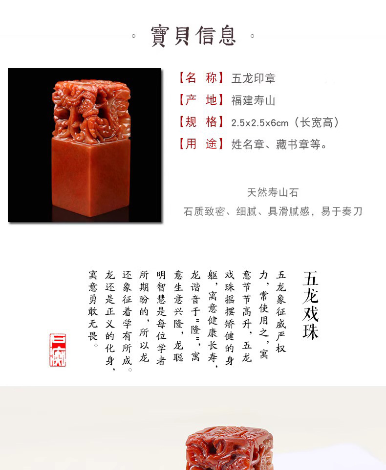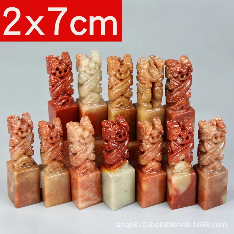 天然寿山石双龍印鑑書道書画練習章金石篆刻印石プレゼント卸売り2x7