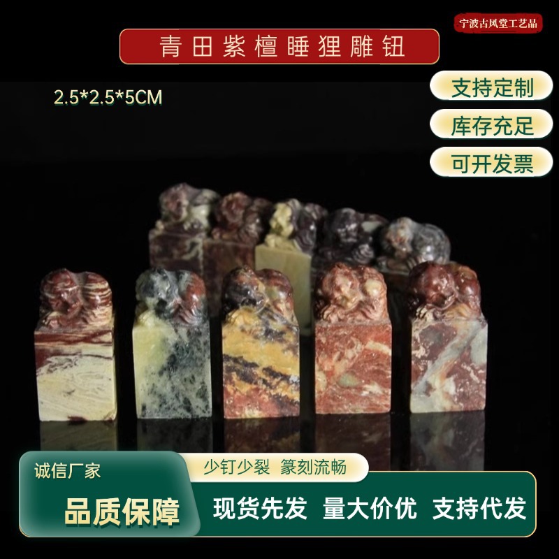 青田石古獣彫刻ボタン2*2*5石章印石章材印鑑金石篆刻章材代発