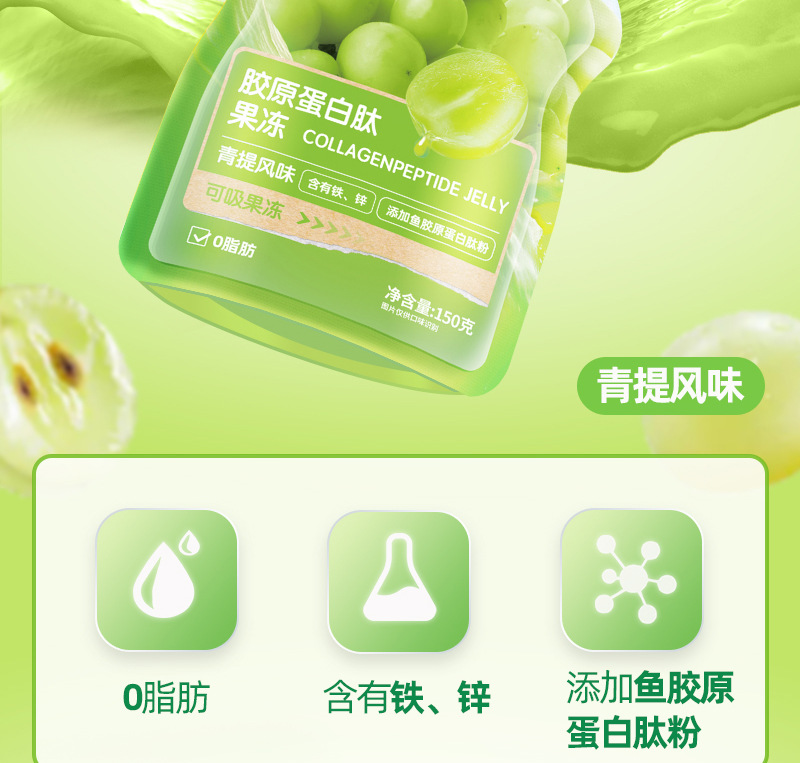 ライチ風味ゼリー 150g,コラーゲンペプチドゼリー(チンティ味)150g