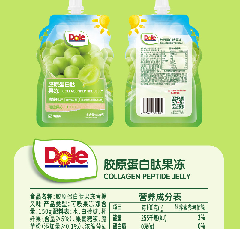DOLE コラーゲンペプチド 吸えるゼリー グリーンライチ風味 子供用スナック 吸えるゼリー