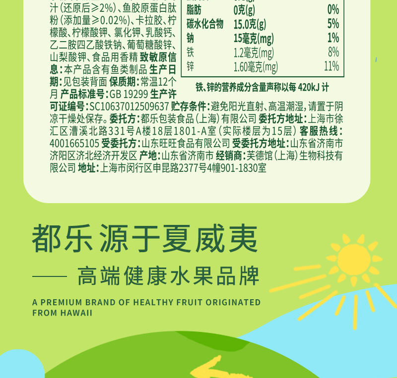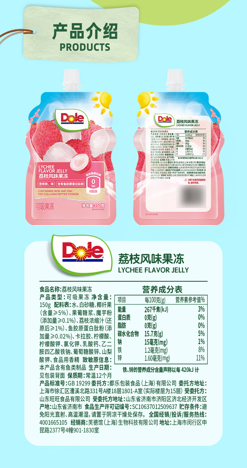 Dole都楽青提香橙レイシ味コラーゲンペプチド冷凍ゼリー子供用カジュアルスナックプリン