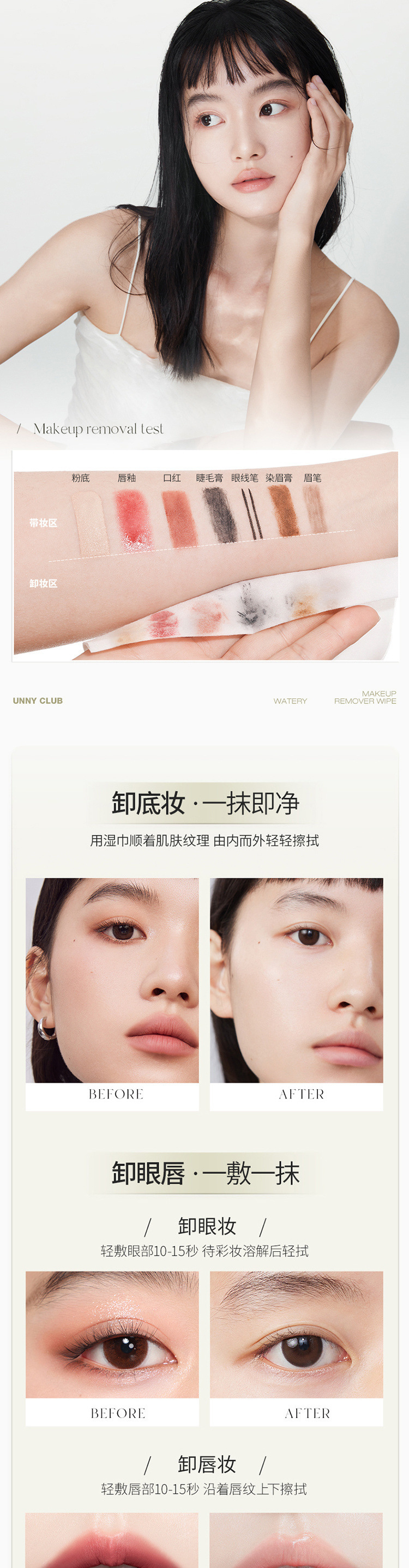 UNNY メイク落としワイプ 21 枚箱入り ポータブル メイク落とし 目と唇に優しくディープクレンジング