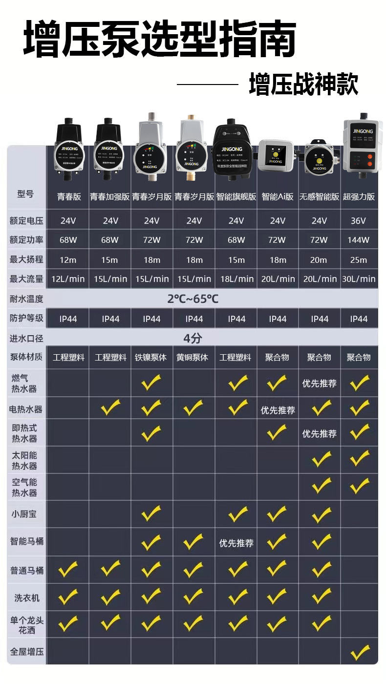 增压泵家用24v智音自动卫生间增压水泵太阳能淋浴头耐高温增压泵
