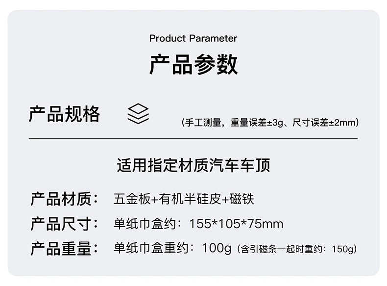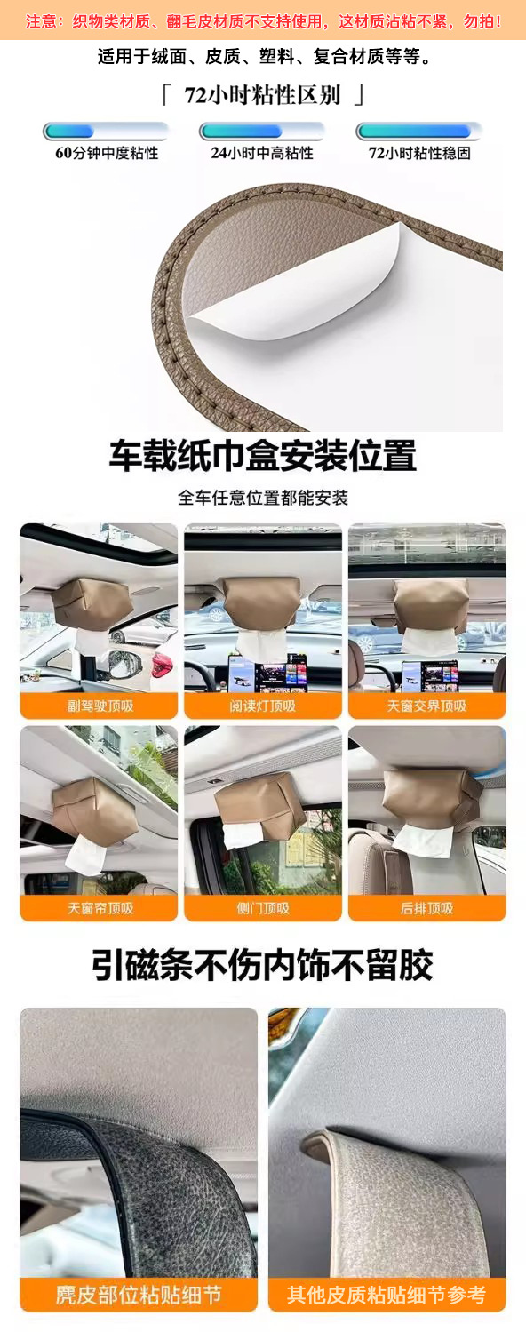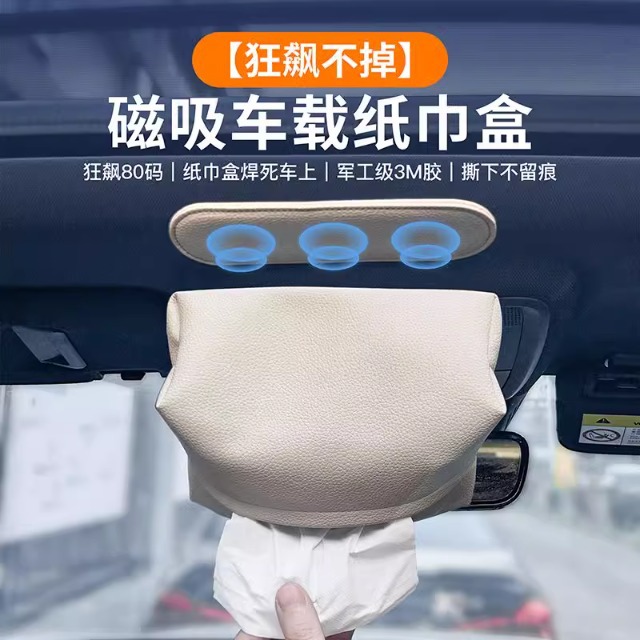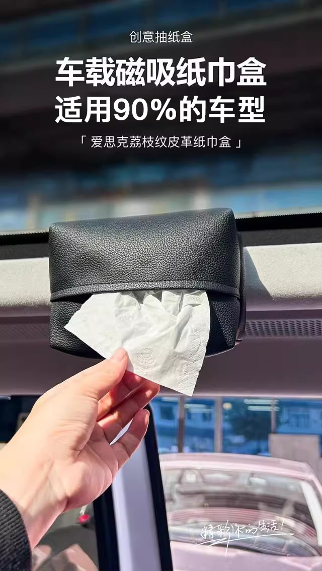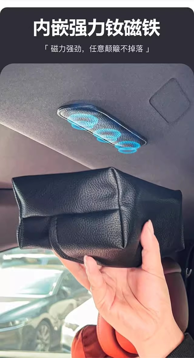 磁铁吸顶式车载纸巾盒 抽纸盒车顶天窗高级感 车用创意抽纸盒挂袋