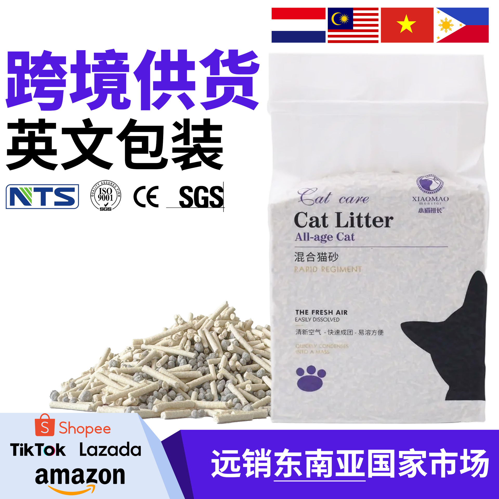 猫砂 豆腐砂 2kg 輸出用 マレーシア Lazada 英語パッケージ 豆腐猫砂 消臭 固まる