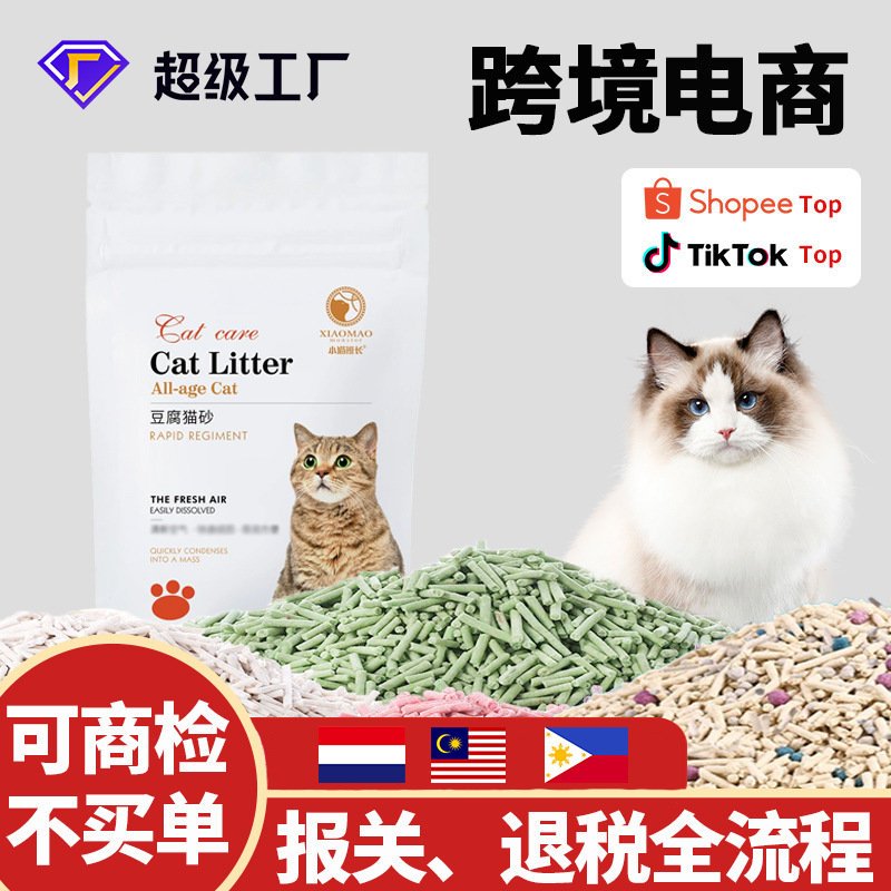 越境豆腐猫砂小ロットOEM 固まる吸水性 低塵 緑茶トウモロコシ豆腐砂 猫砂 原産工場