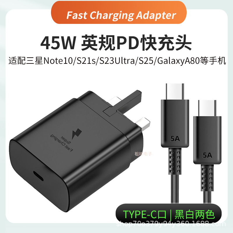 45W英规PD快充头适用三星S24+手机充电器S25Ultra充电头typec通用
