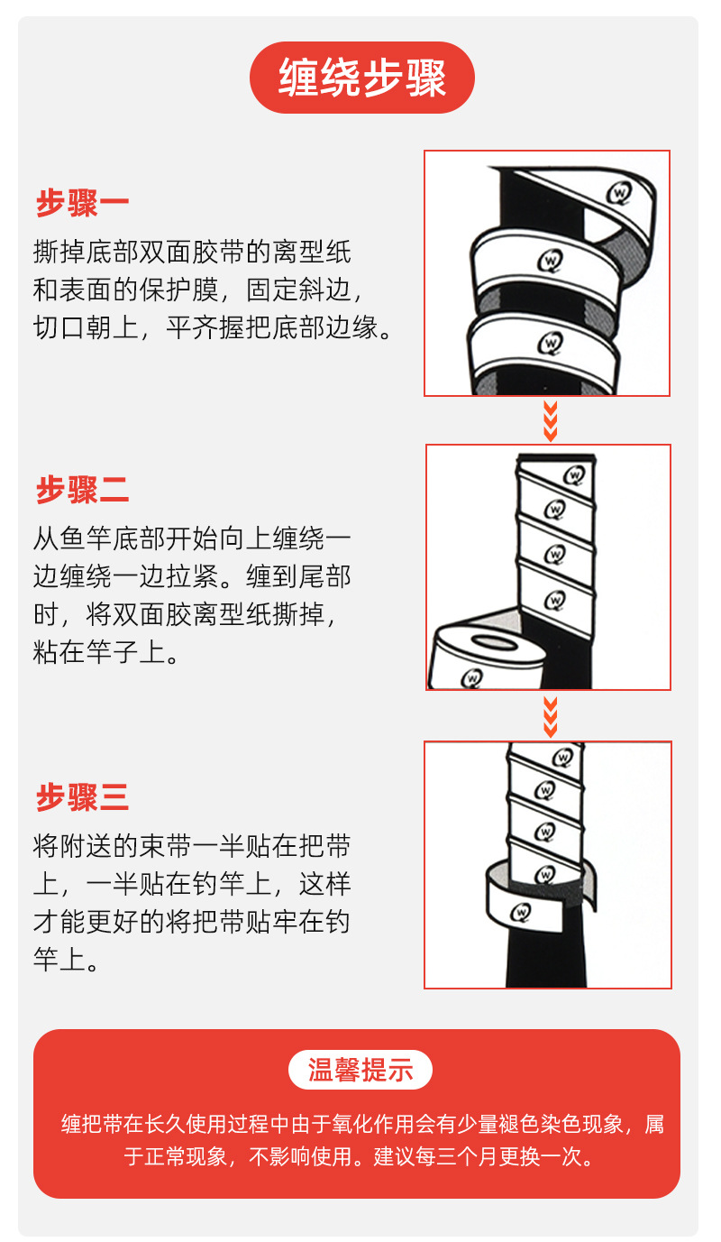 威勤鱼竿缠把带高端加厚加长防滑钓竿绑带吸汗鱼竿手把带缠绕带PU