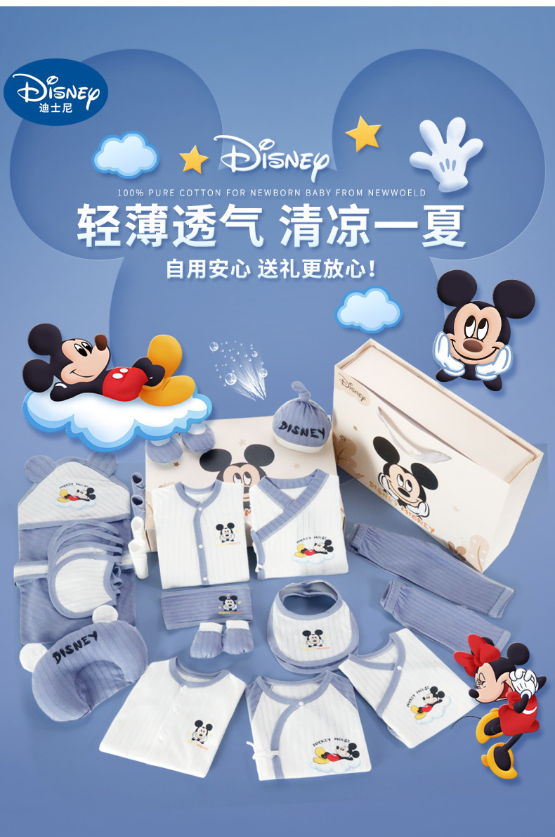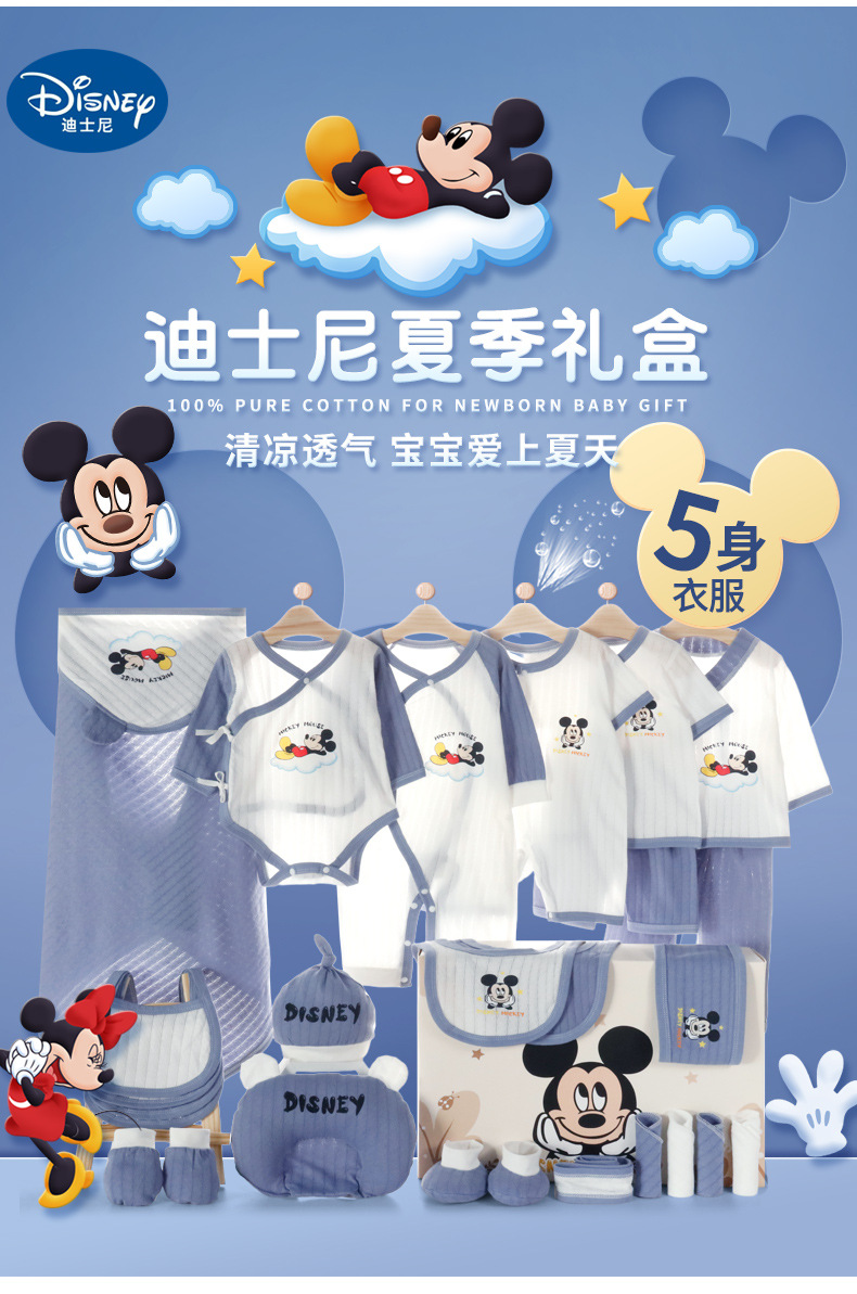 ミッキー 夏の新生児ギフトボックス ベビー空調服 パジャマギフト 赤ちゃんワンピース ロンパース 百日祝い 純綿セット