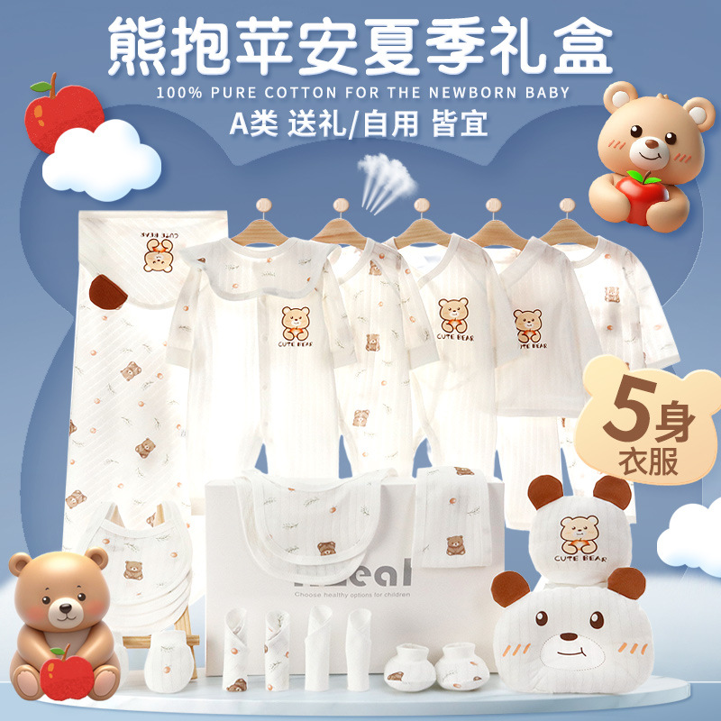 新生児赤ちゃん純綿ベビーギフトボックス夏超薄半袖セットエアコン服下着満月プレゼント