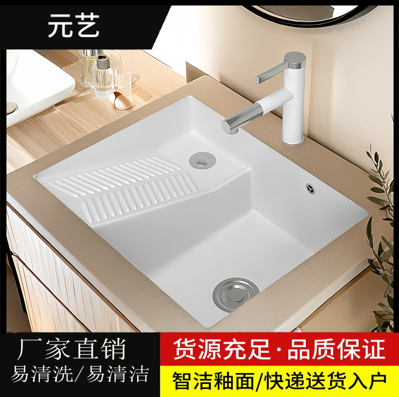 バルコニー深めのアンダーデスク洗面器、洗濯洗面器、埋め込み洗面器、大型家庭用セラミック洗面器、単一洗面器