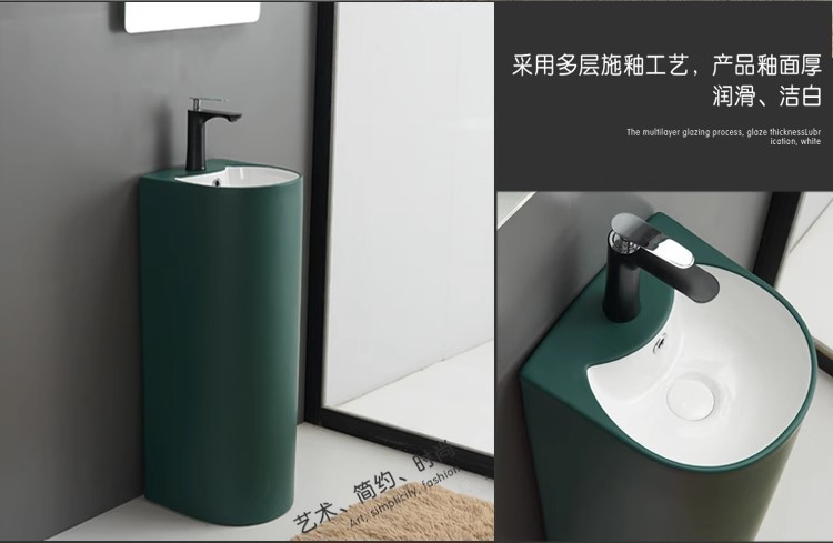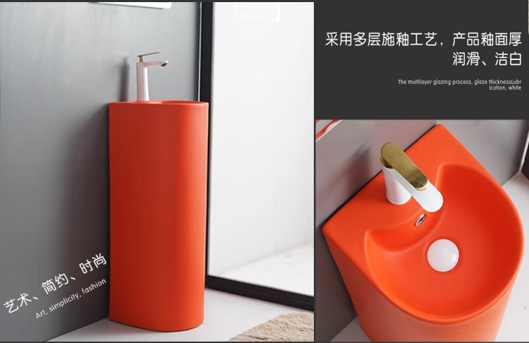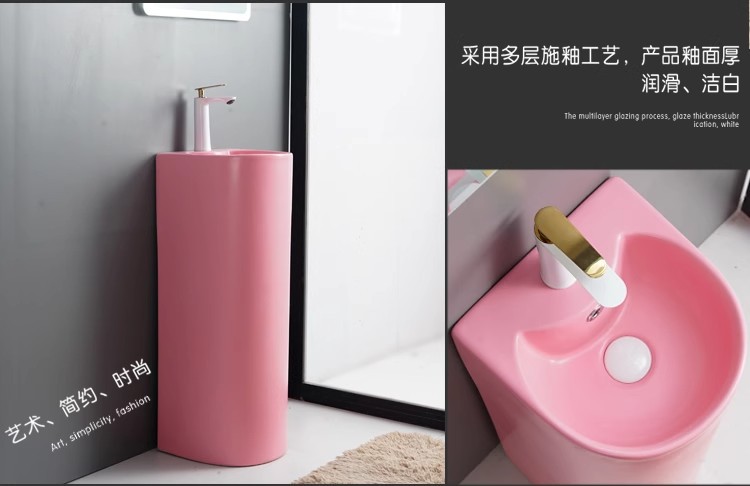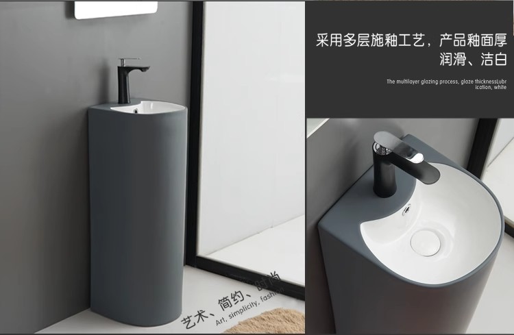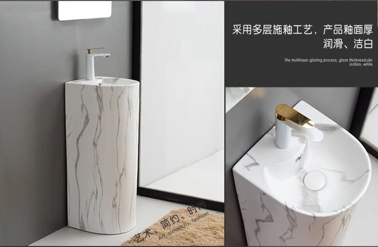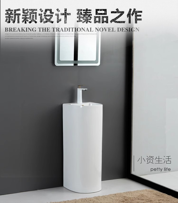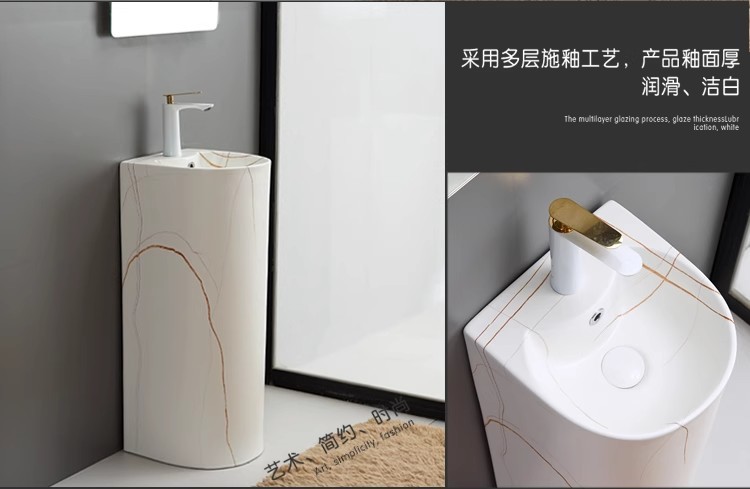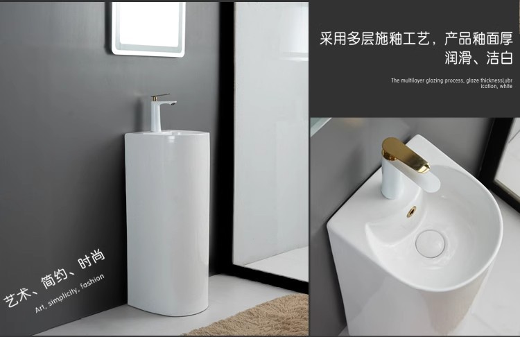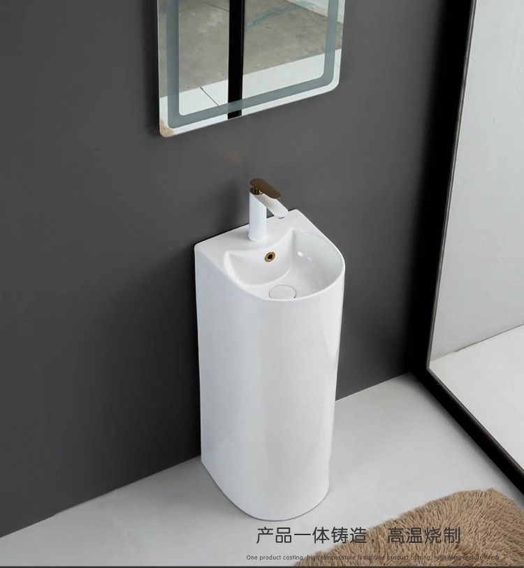 浴室の新しい床置き型一体型洗面台クリエイティブ洗面台小型セラミック柱洗面台バルコニー柱洗面台