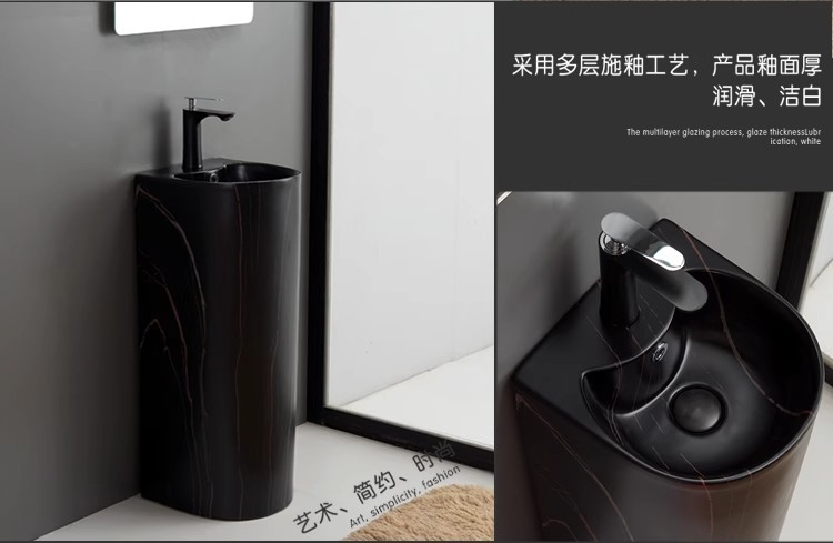 黒柱洗面台小型セラミック一体型洗面台シングル洗面台シンプルな柱型床置き洗面台