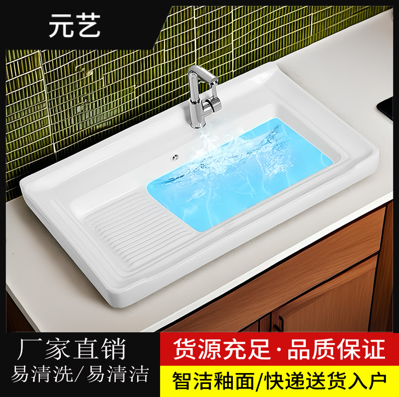 洗濯板付きバルコニーセラミック洗濯シンク、家庭用大小の埋め込み洗面台、洗濯シンク
