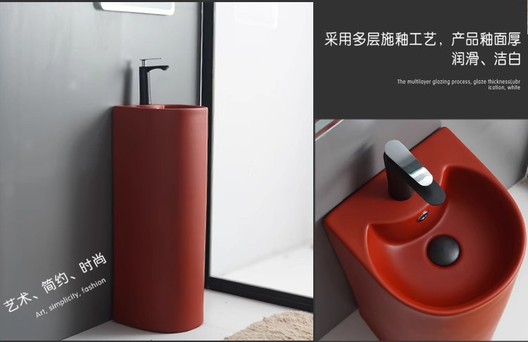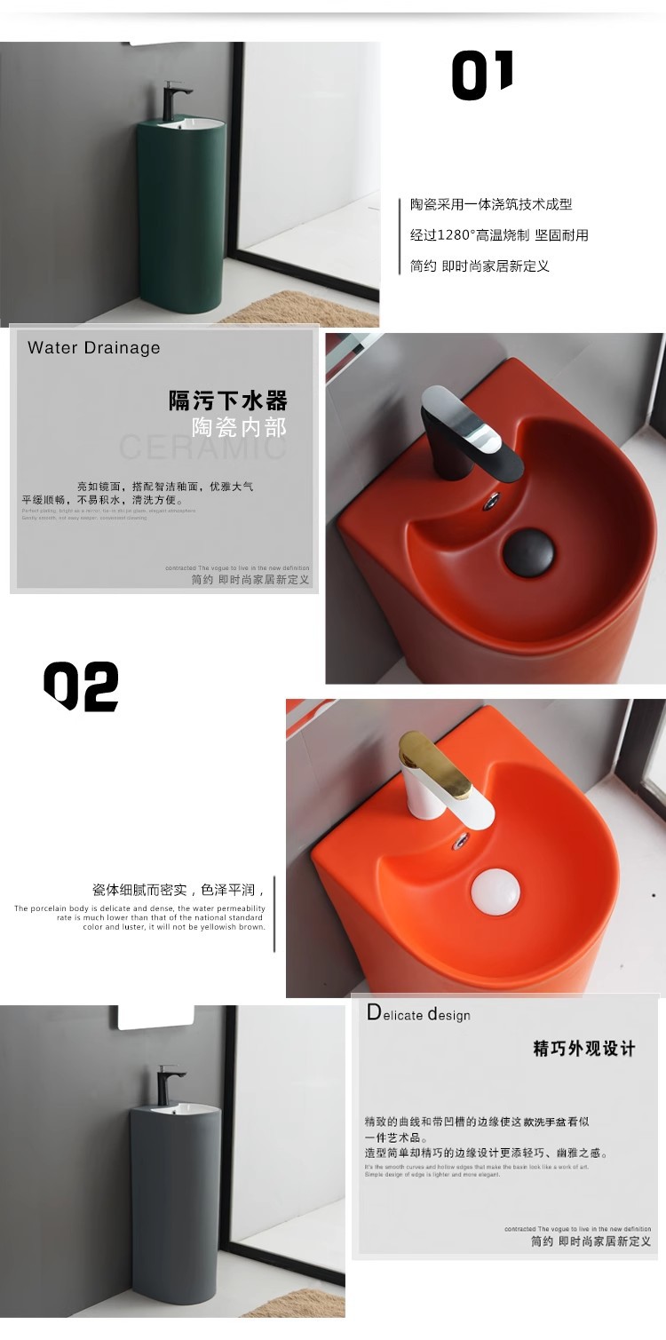 柱状洗面器、中庭、屋外バルコニー用洗面台、多様なスタイルの床置き式洗面所、セラミック一体型洗面器、モダンでシンプル