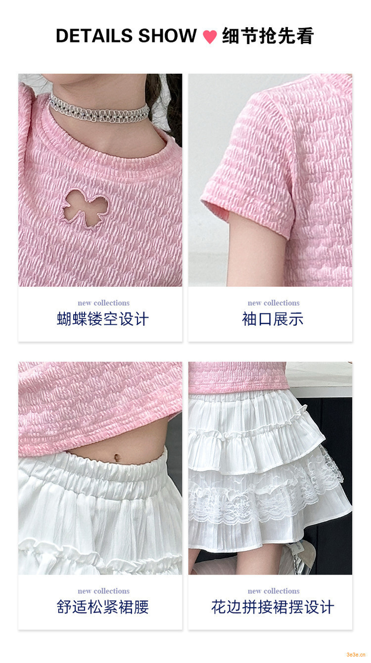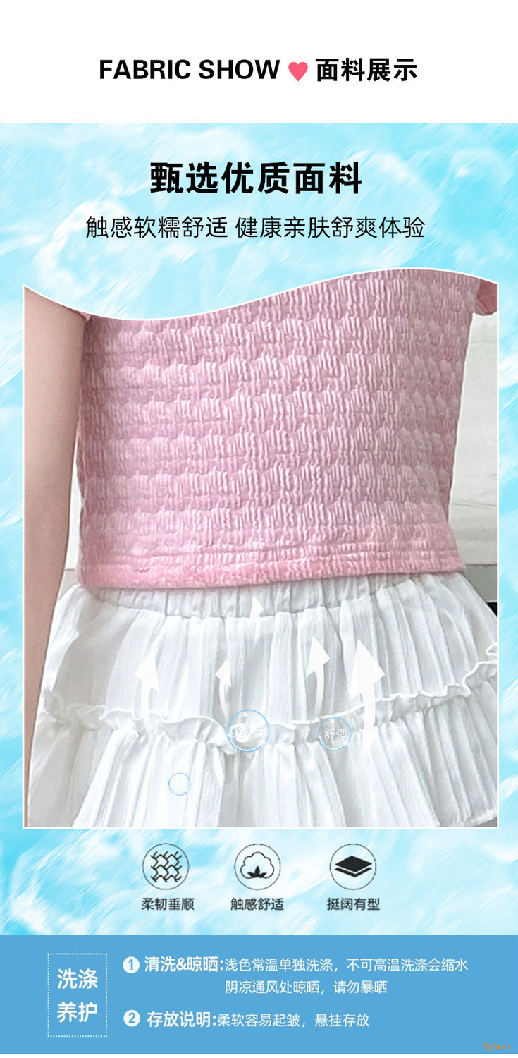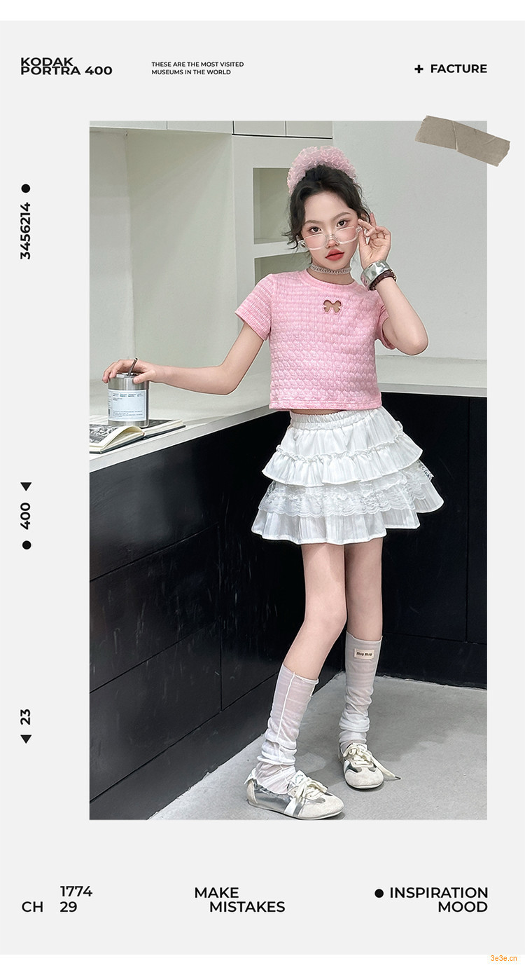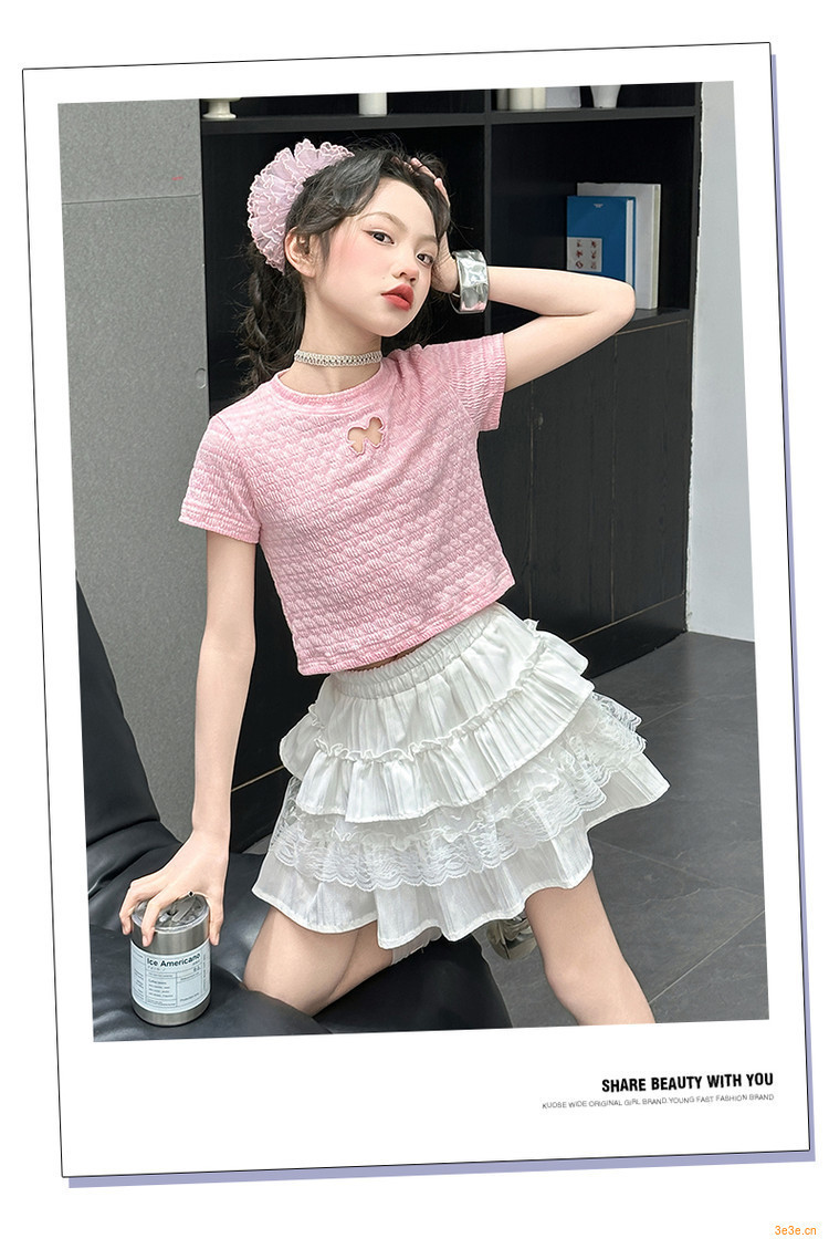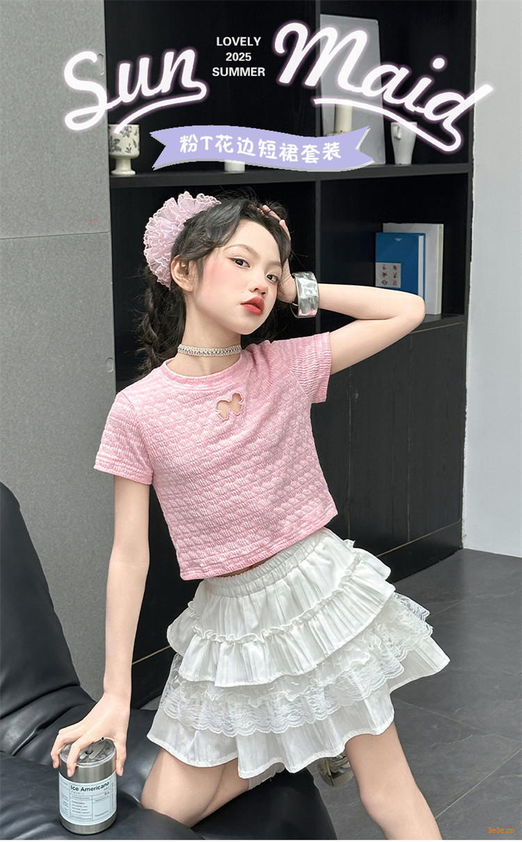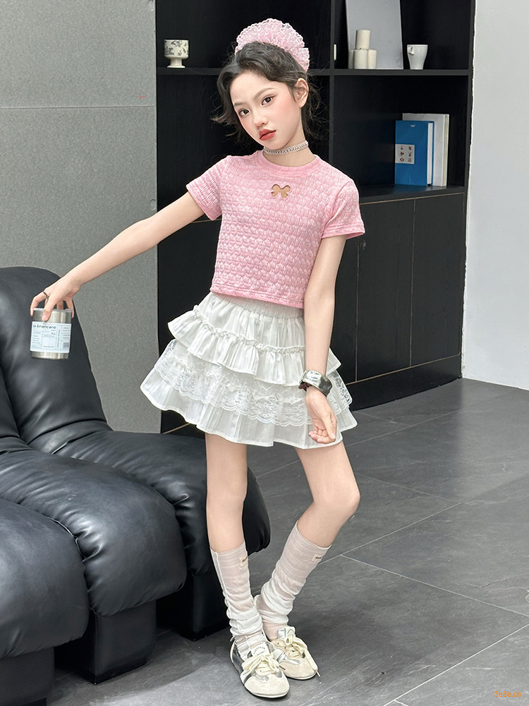 ピンクのTシャツ,白いスカート