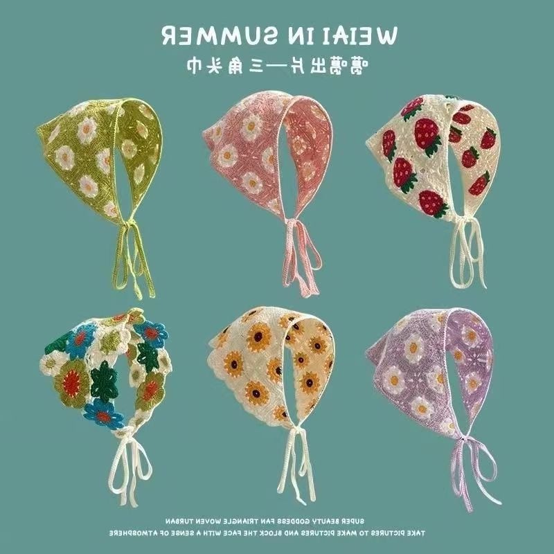 純欲ヘアバンドの女性の髪飾りファッションニットのフックの透かし彫りの三角タオルの女性の甘くてかわいい少女風の花のスカーフ