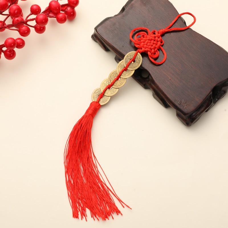 五帝のお金、アンティーク銅貨の装飾、車のペンダント、中国の結び目タッセルマネーストリング