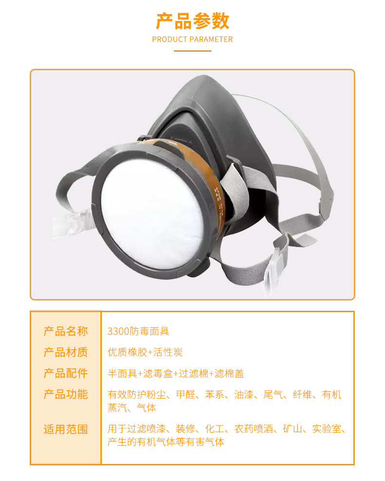 新品3300防尘喷油漆防护防毒面具化工活性炭口罩异味工业面罩