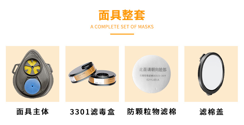モデル 3300 ガスマスク + 3301 ガスカートリッジ,3300 防毒マスク一式セット (マスク単体 + フィルターボックス + フィルターコットン + フィルターコットンカバー),3301 毒フィルターボックス
