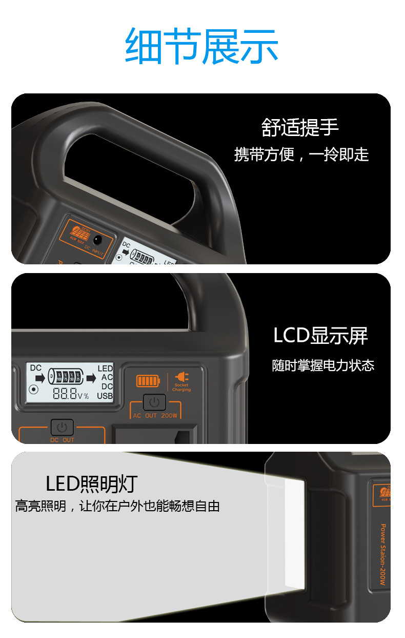 220V/110V户外电源200W太阳能发电移动应急电源户外钓鱼厂家批发