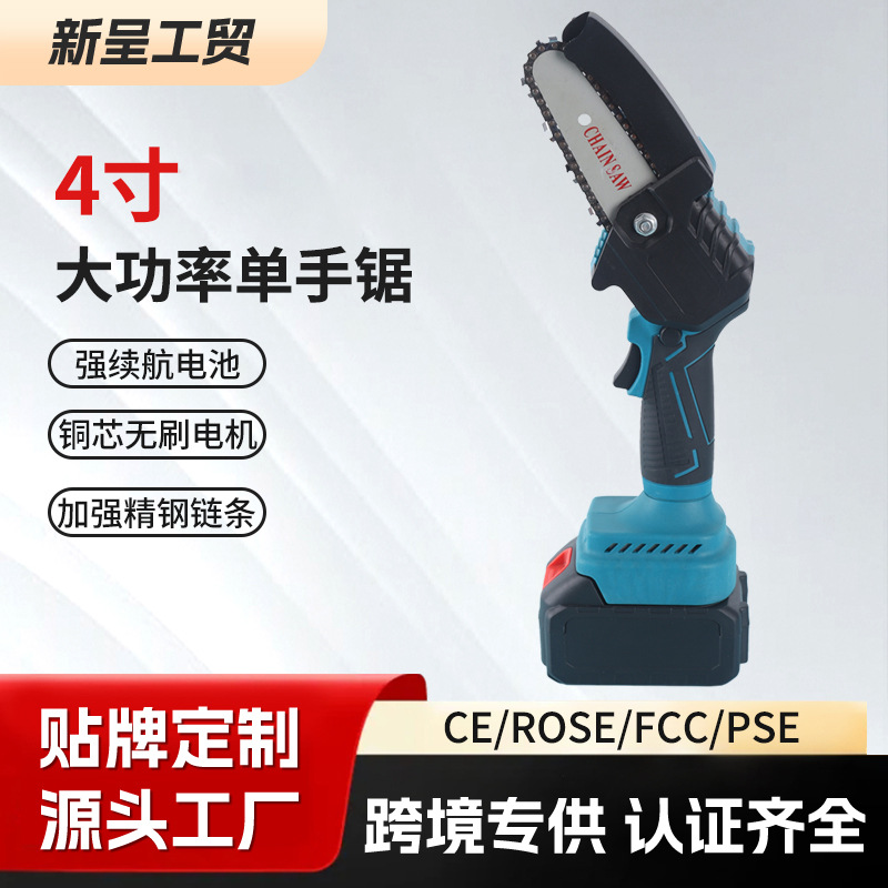 4インチ電動剪定鋸充電式片手リチウムチェーンソー家庭用屋外チェーンソー充電式伐採鋸