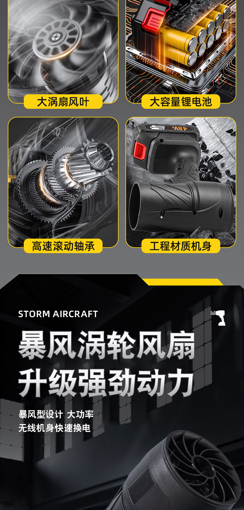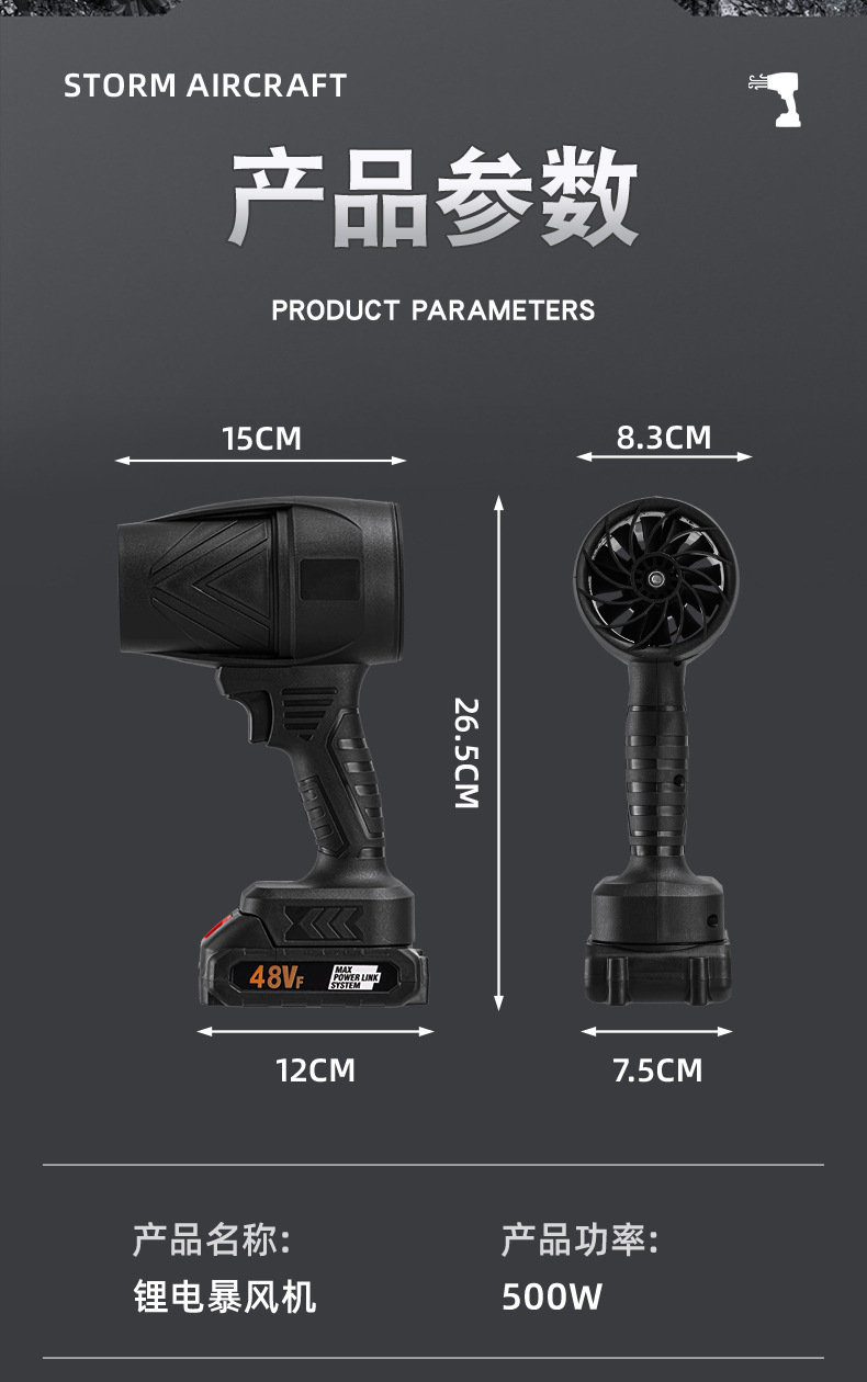 跨境厂家强力风扇吹尘机吹雪锂电暴风机涡轮吹风机大功率鼓风机