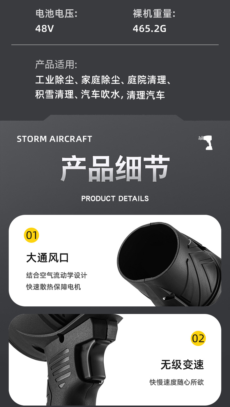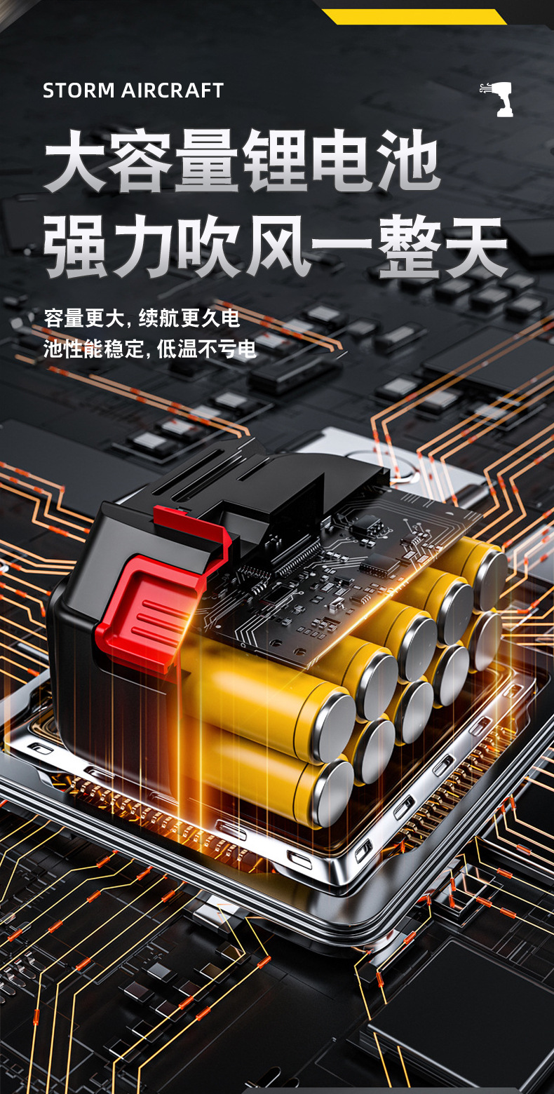 跨境批发大功率工业级鼓风机无线手持款吹尘机锂电暴力涡轮吹风机